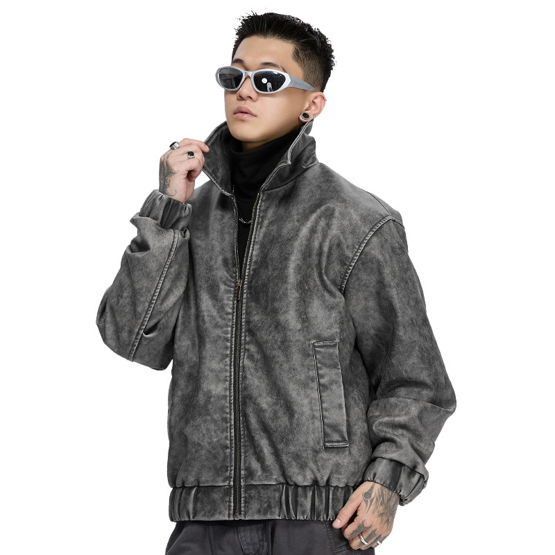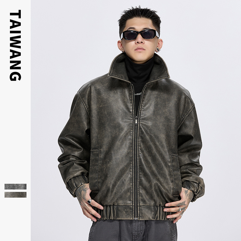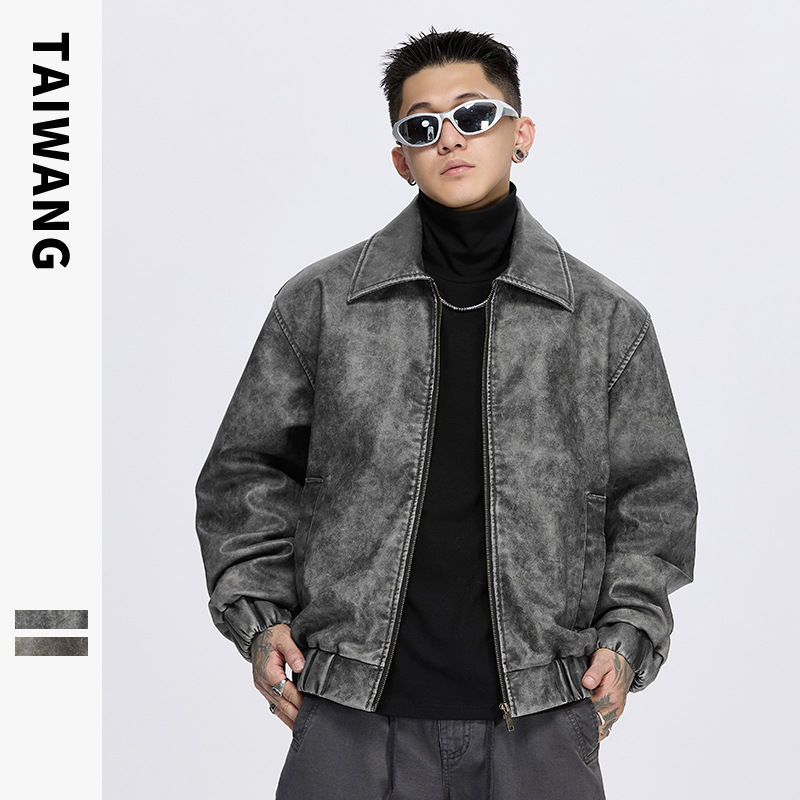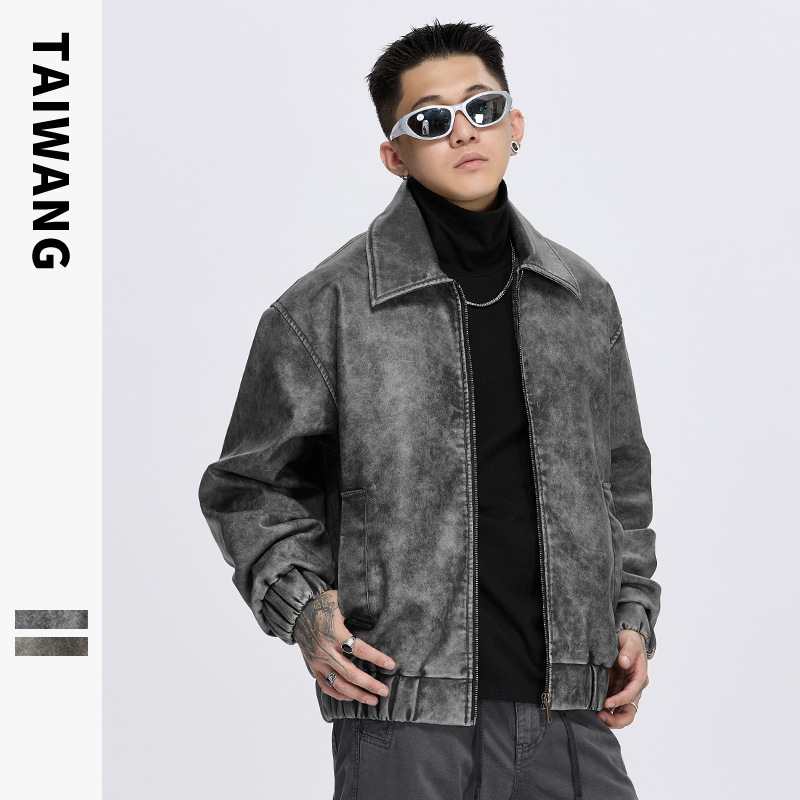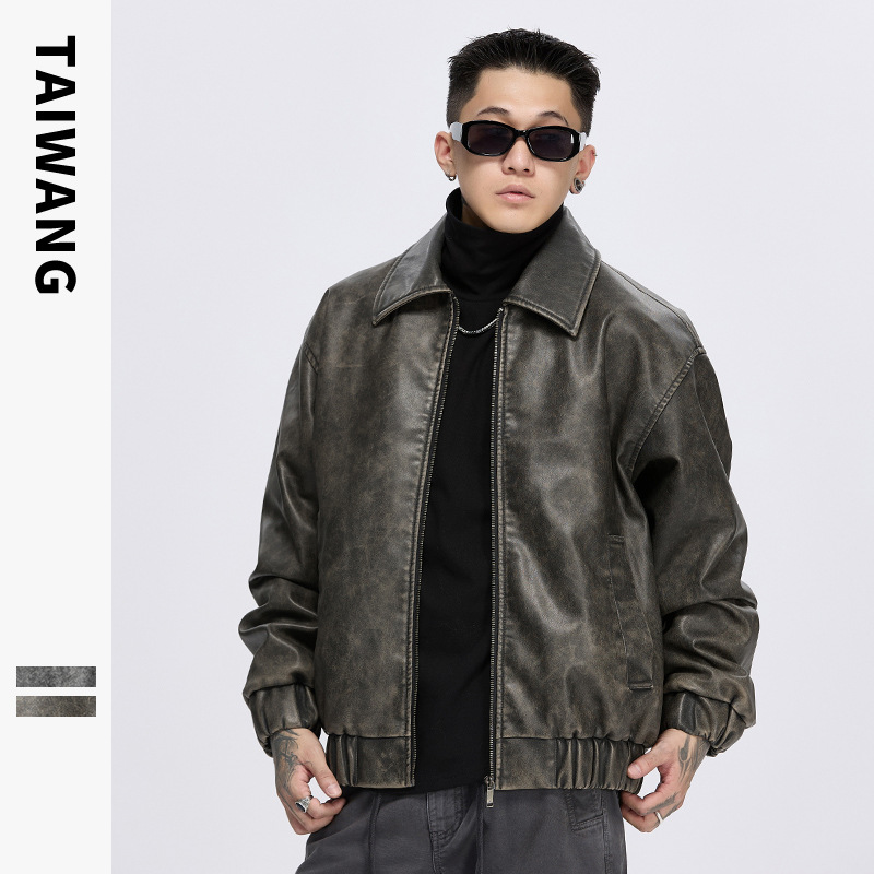 泰王男装丨2025年美式复古翻领皮衣夹克男秋冬季新款宽松休闲外套