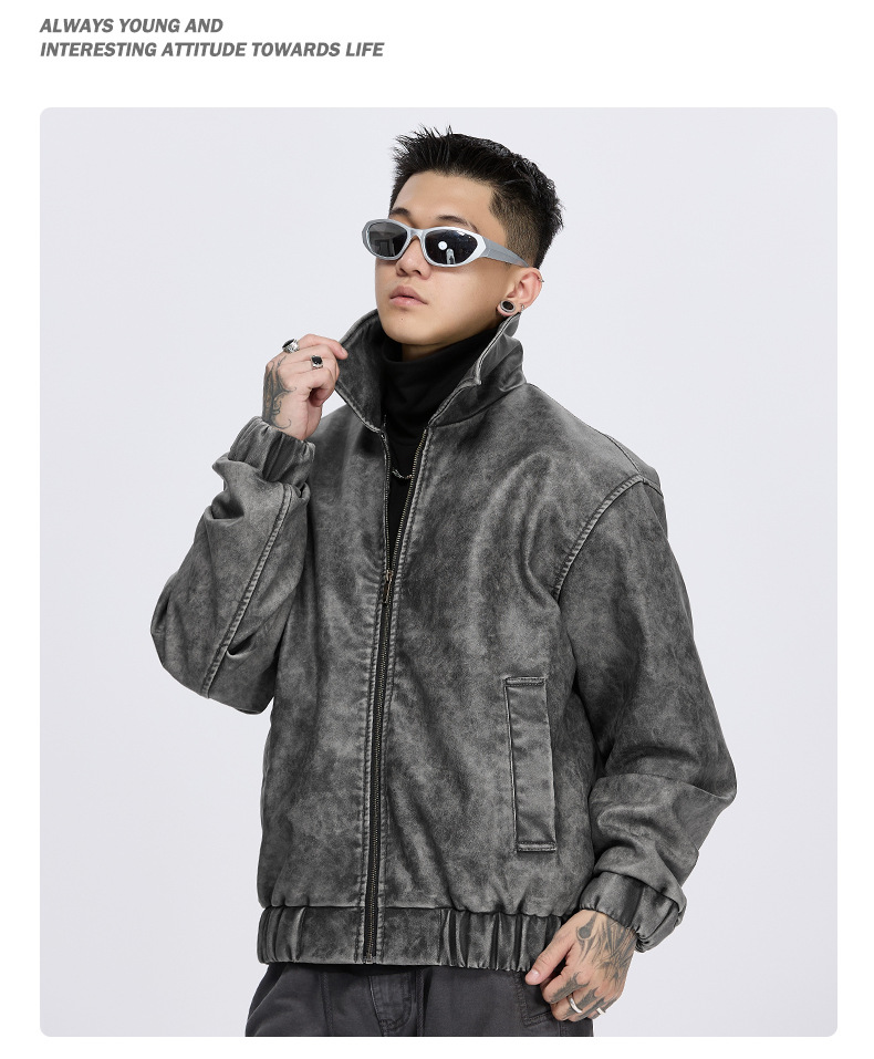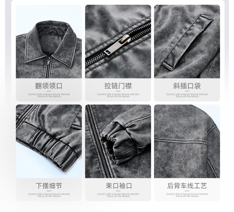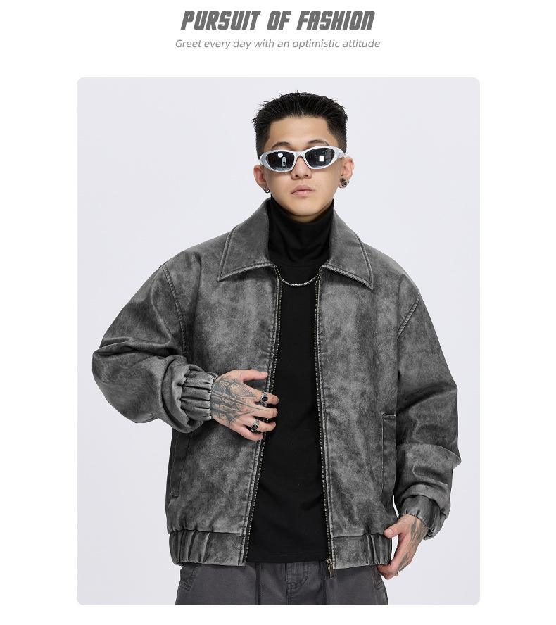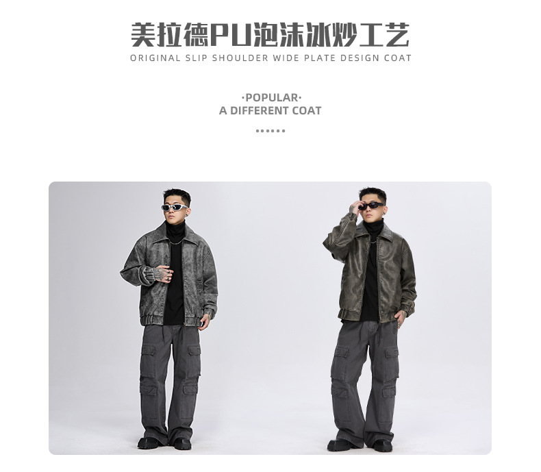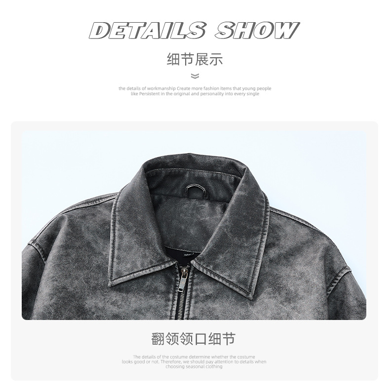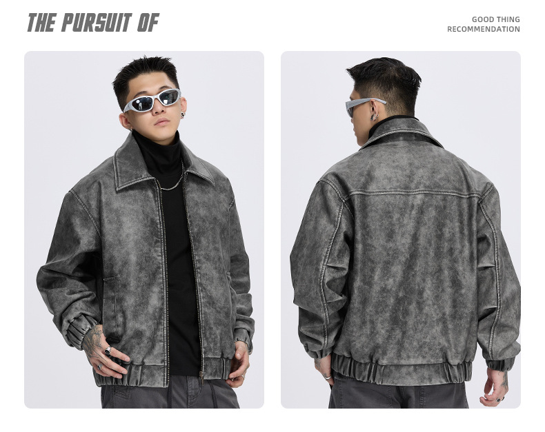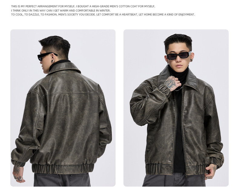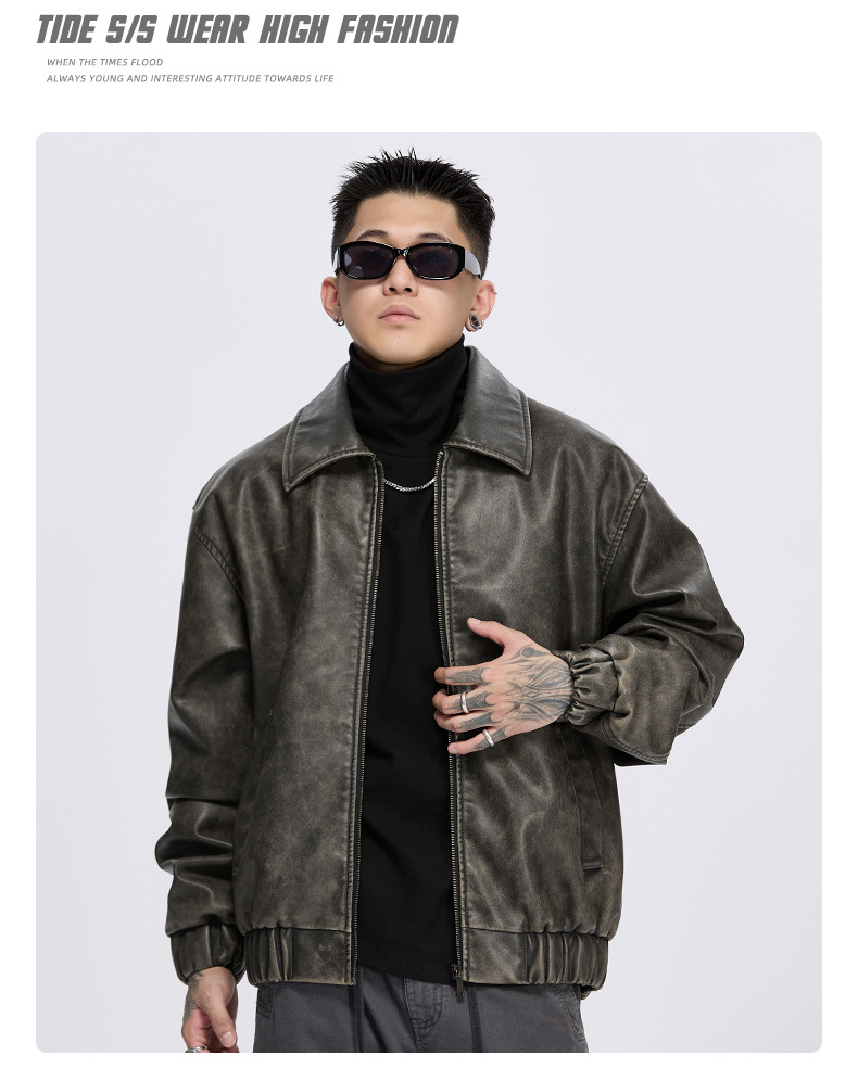 泰王男装丨2025年美式复古翻领皮衣夹克男秋冬季新款宽松休闲外套 投诉