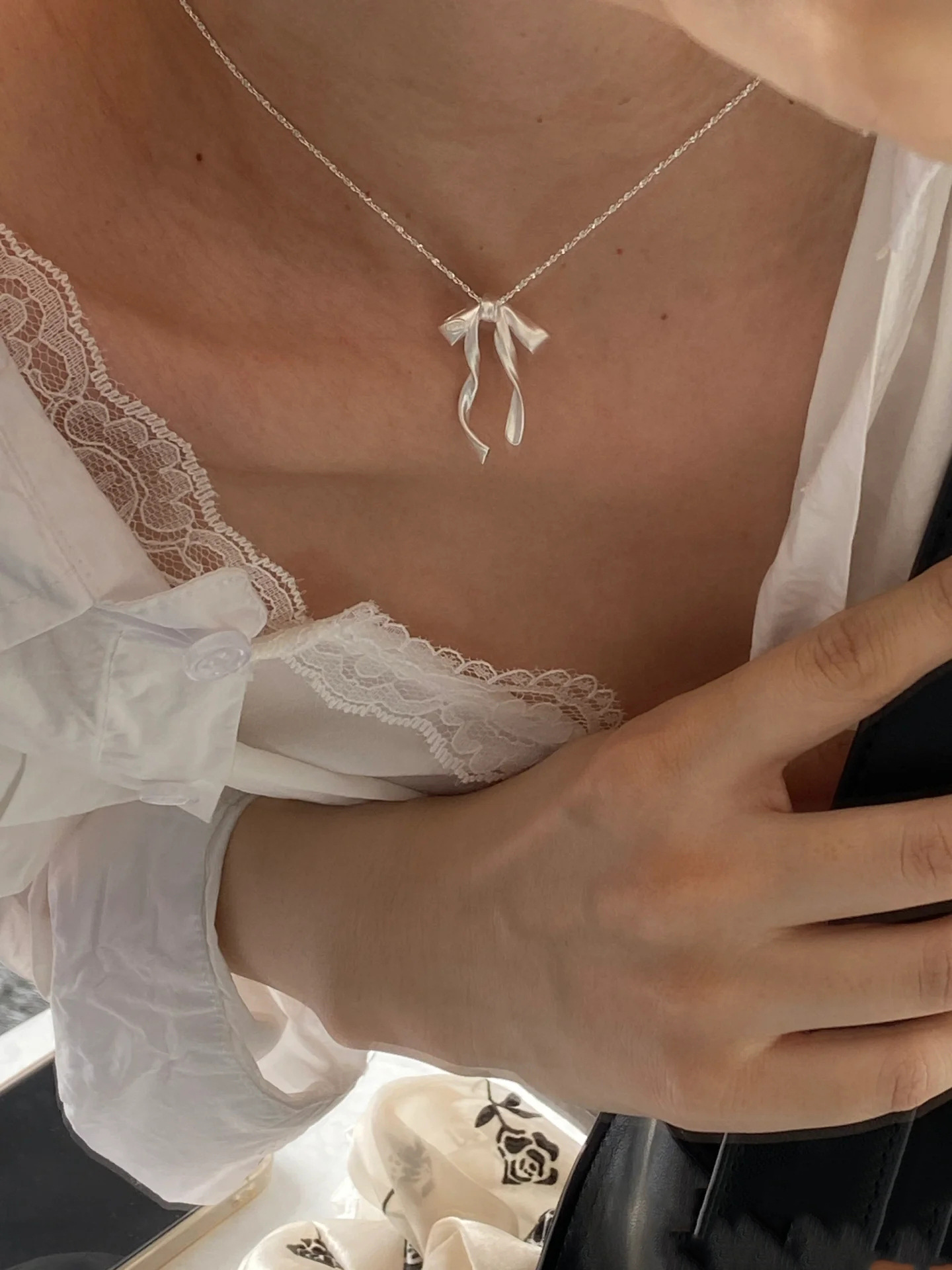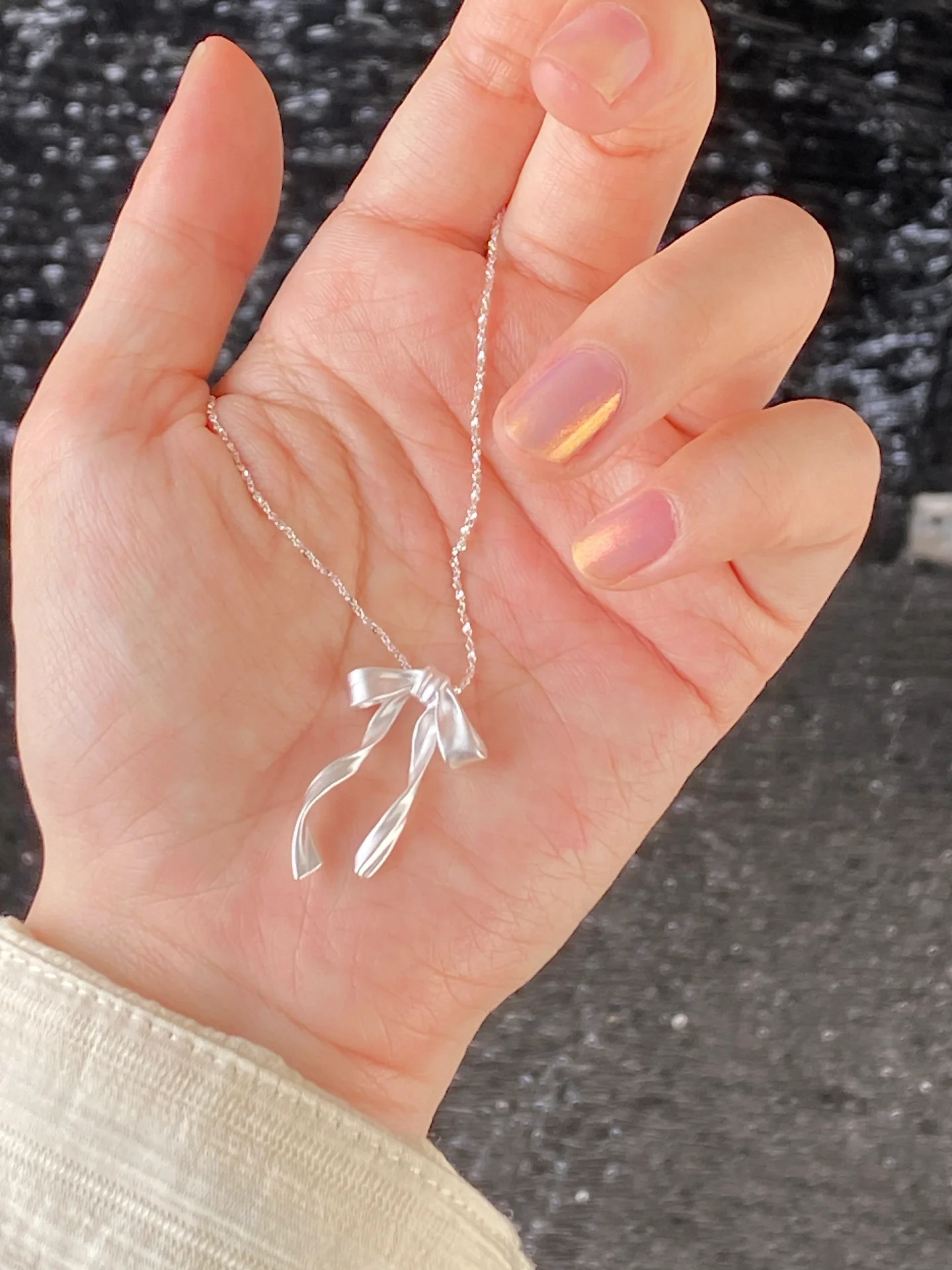 飘带磨砂蝴蝶结项链(白银色) ¥0 492939个可售