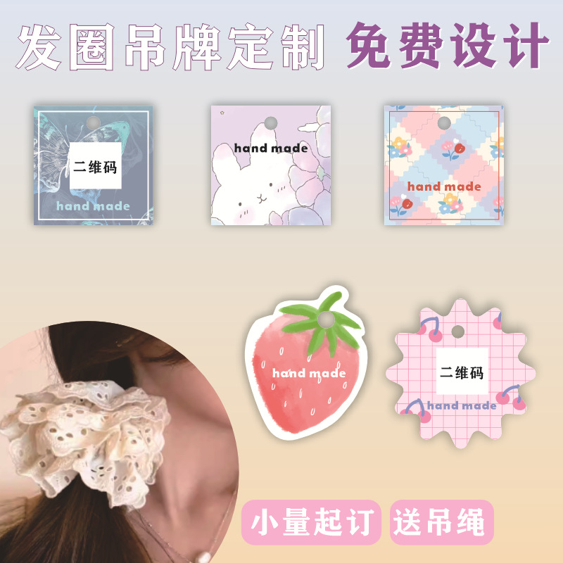 大肠发圈皮筋头绳硬质卡设计对折挂卡吊牌卡片儿童发饰DIY卡纸定 English | 投诉