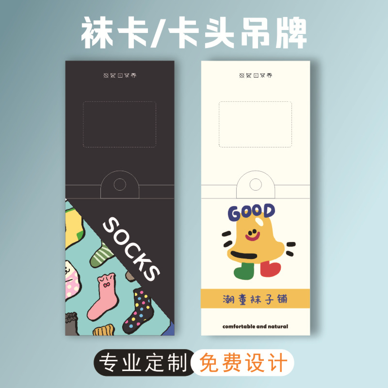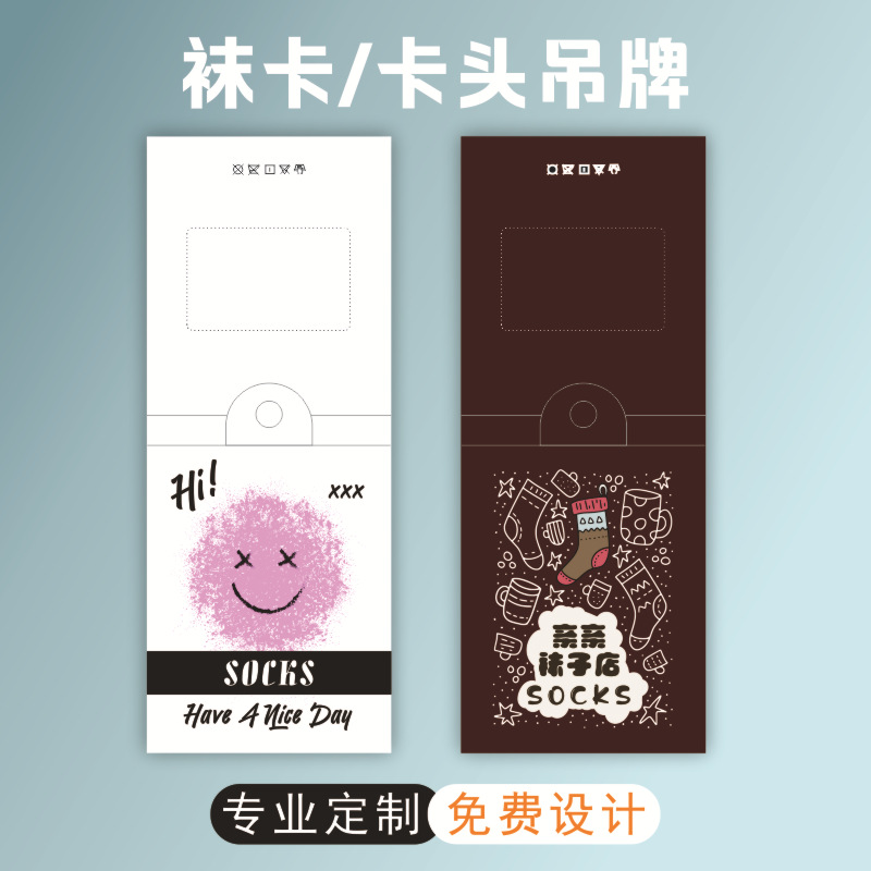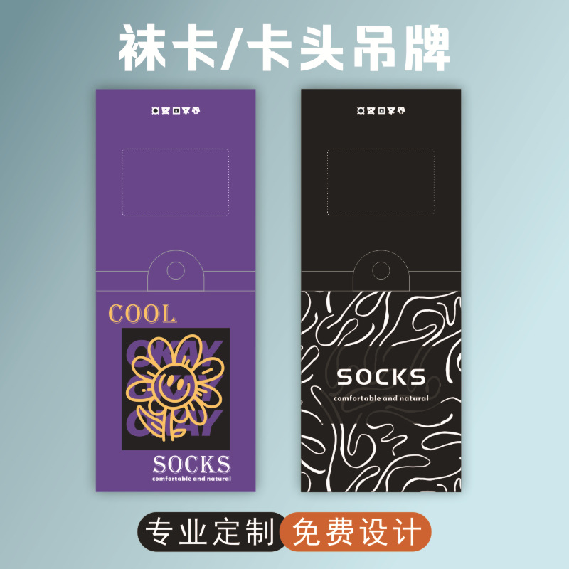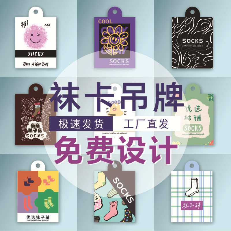 工厂通用袜子腰封定制包装设计logo印刷标签吊牌卡片卡纸卡头定做 English | 投诉