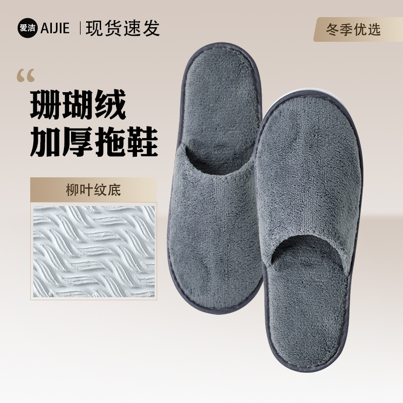 酒店一次性拖鞋批发珊瑚绒居家待客美容院宾馆民宿冬季加厚鞋子