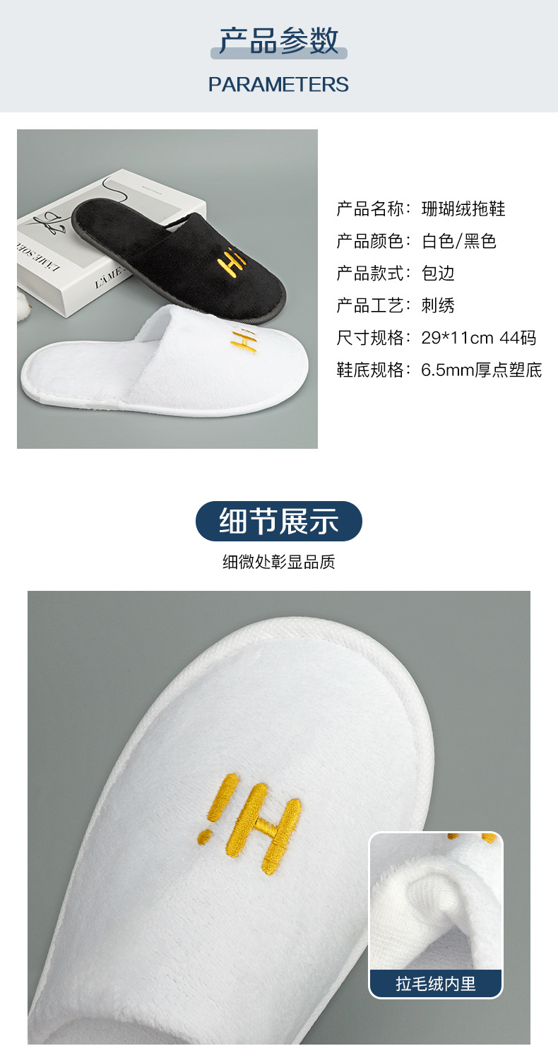 品牌: 永康 尺码: 均码 是否进口: 否 材质: 珊瑚绒 功能: 防滑 加印LOGO: 可以 加工定制: 是 厚度: 6.5mm,支持定制 货号: HI珊瑚绒拖鞋 产地(国内): 江苏省 适用对象: 成人 图案: 字母HI 箱装数量: 300/双 价格段: 可详询 毛重: 可详询 只数: 可定制 规格: 珊瑚绒 是否有专利: 否 风格: 简约,轻奢 重量: 0.001 kg/双