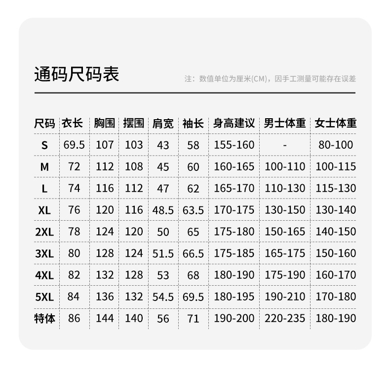 | 7XL(需加20元) | ¥0 | 48件可售 |