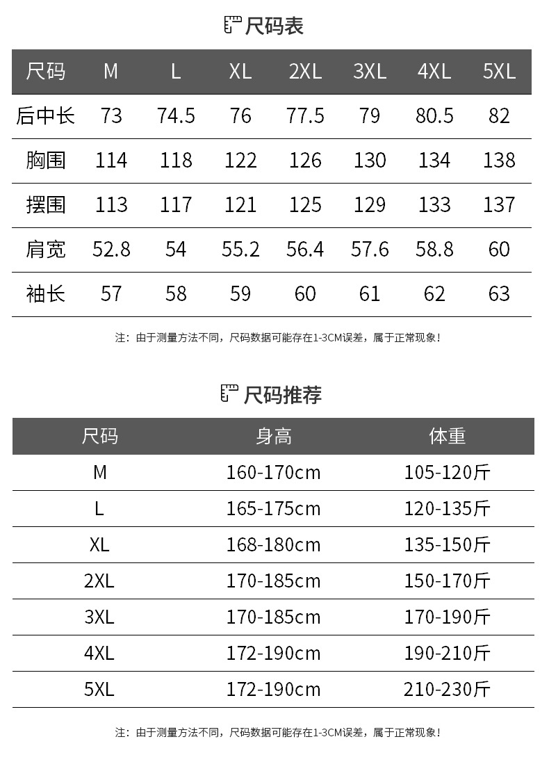| 5XL 适合210-230斤 | ¥12625 | 296件可售 |
