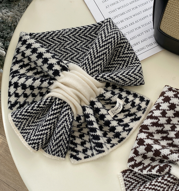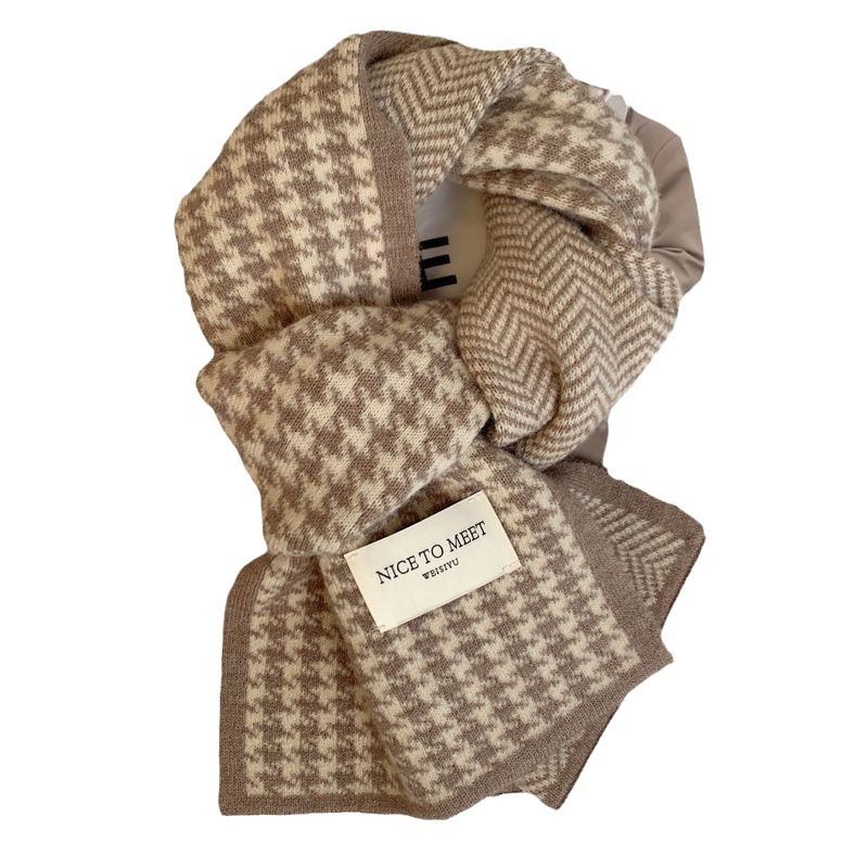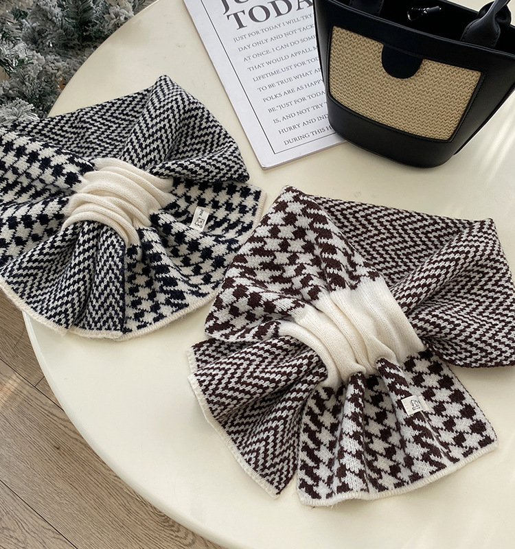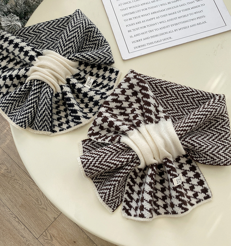 加厚围巾千鸟格时尚韩版户外保暖学生百搭女秋冬季纯色高级感围脖 投诉