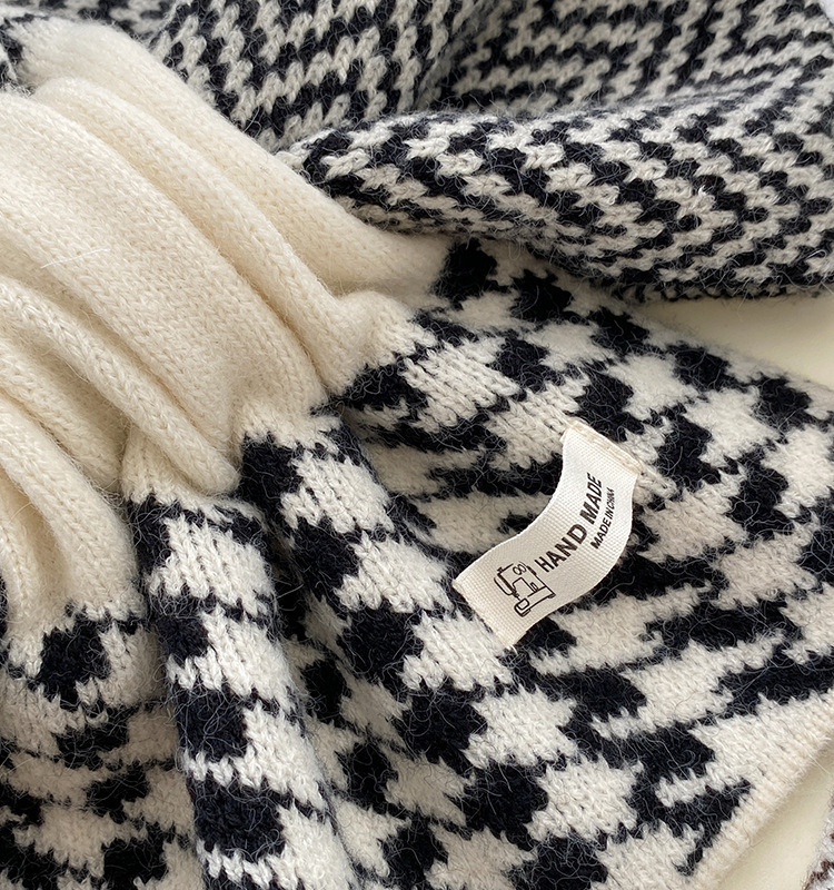 品牌: 旗远针织厂 编织方法: 其他 流行元素: 波点 功能: 保暖 适合季节: 冬季 货号: 11 产地: 河南 款式: 中长 颜色: 波浪千鸟--黑,波浪千鸟--卡其 有可授权的自有品牌: 否 是否跨境出口专供货源: 否 上市年份/季节: 2024年秋季 主面料成分含量: 61%(含)-70%(含) 风格: 简约 面料名称: 涤纶 主面料成分: 涤纶(聚酯纤维) 风格分类: 时尚通勤 处理工艺: 针织 尺寸: 15*80厘米左右 流行元素分类: 几何 重量: 0.001 kg/件