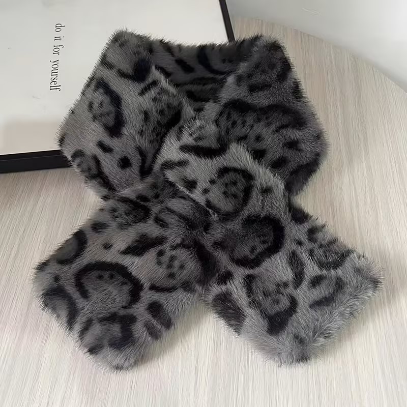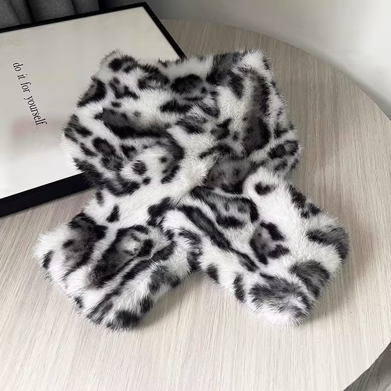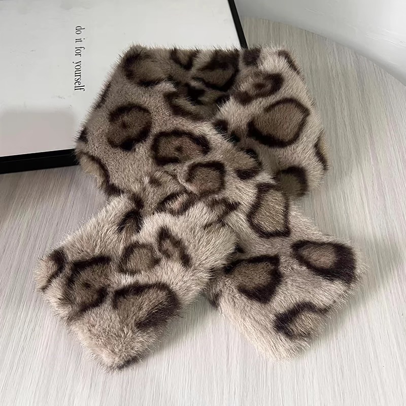 复古豹纹毛绒围巾女冬季时尚保暖毛茸茸仿皮草加厚围脖毛领ins风