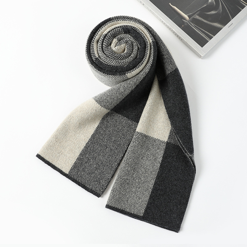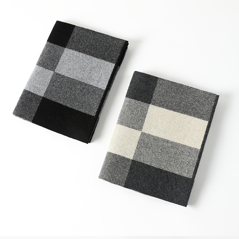 2024冬季轻奢100%纯山羊绒围巾男士秋冬加厚保暖格子围脖礼盒装 投诉