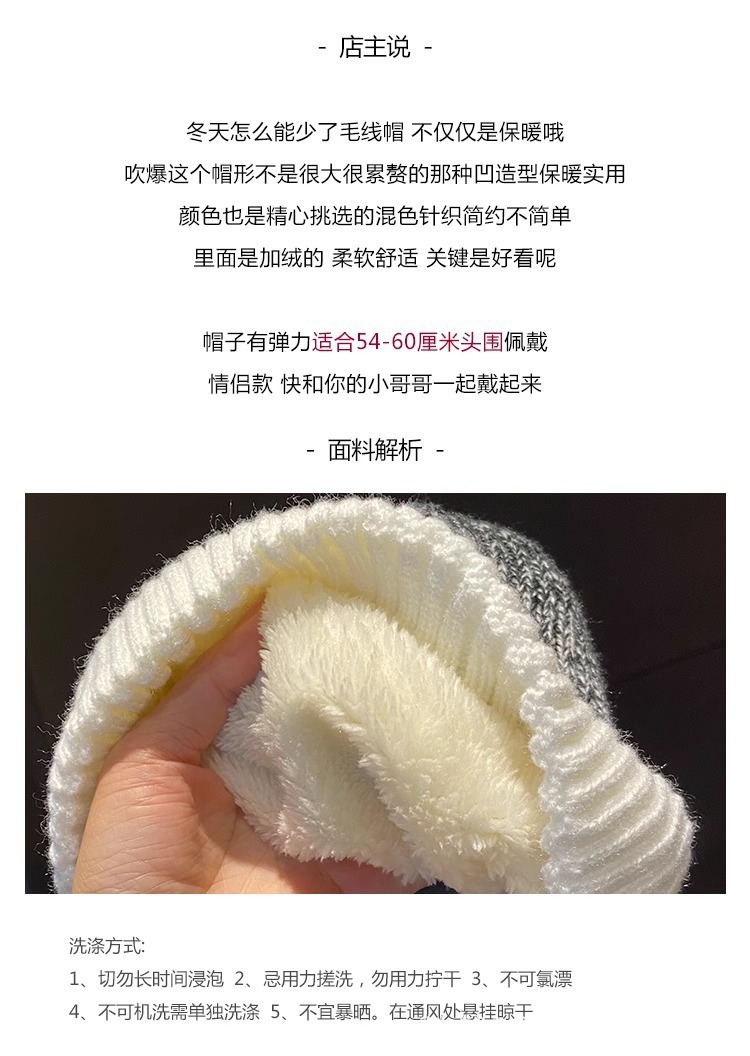 冷帽子男秋冬天韩版潮保暖针织帽日系百搭加绒护耳毛线帽女包头帽 投诉