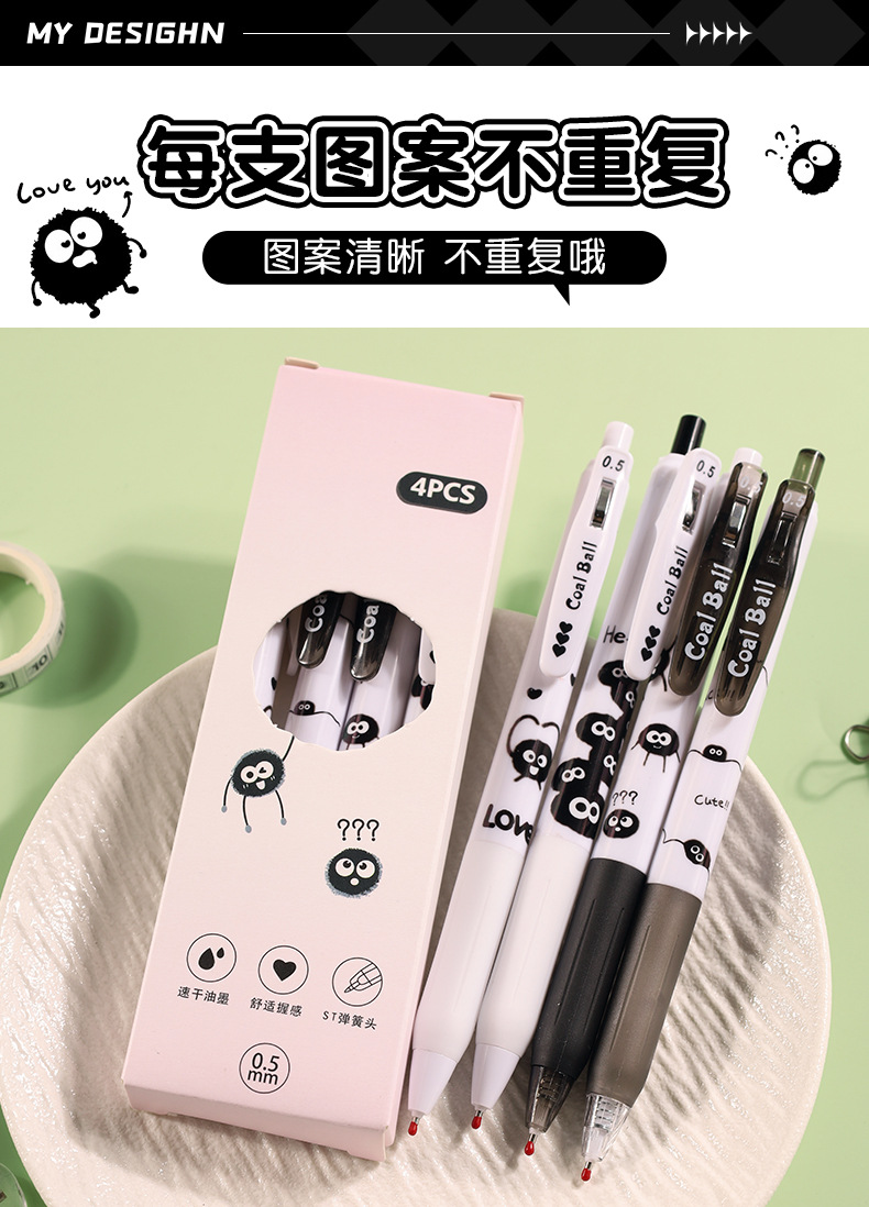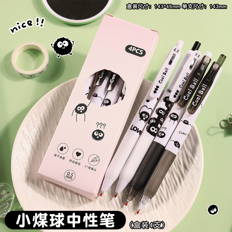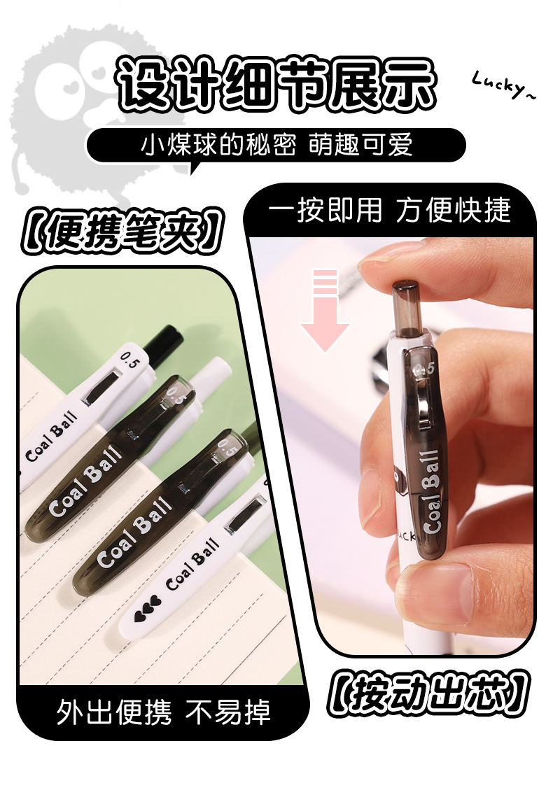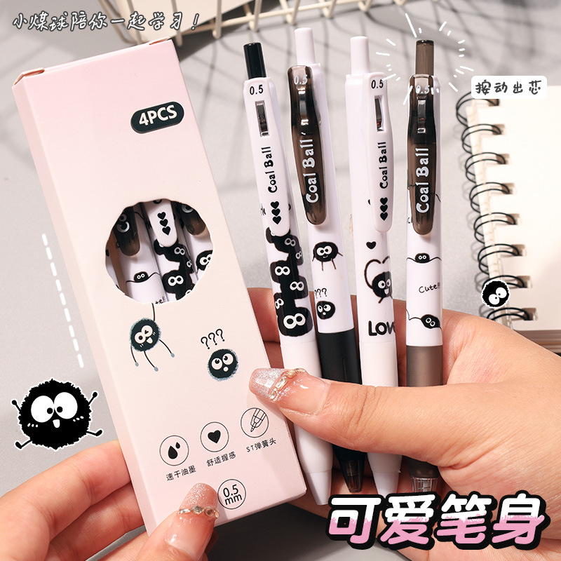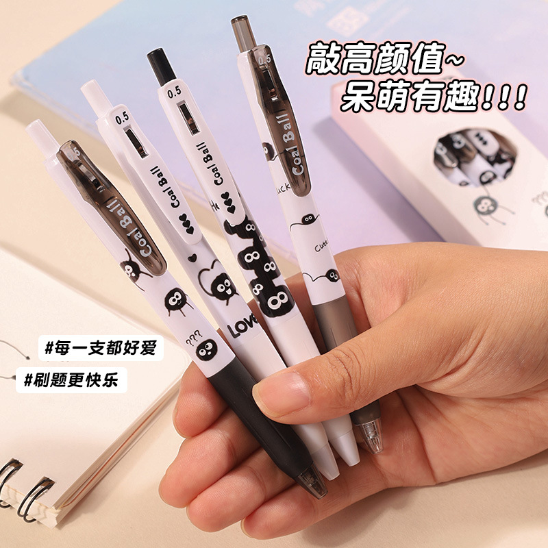 创意小煤球按动笔套装学生用顺滑0.5刷题笔ST速干签字中性笔批发
