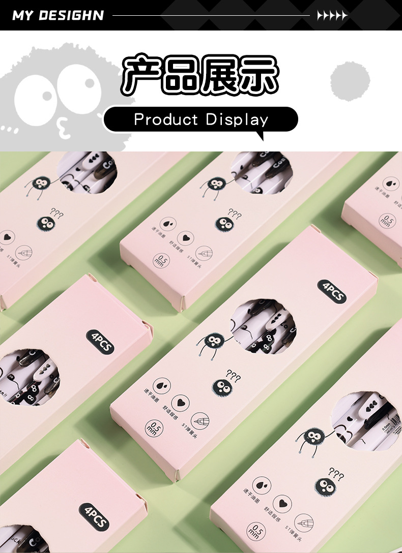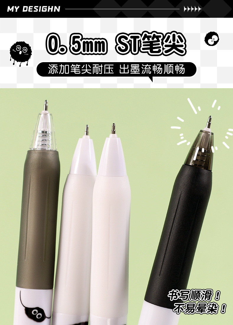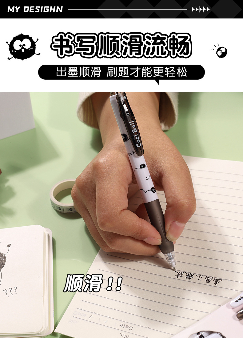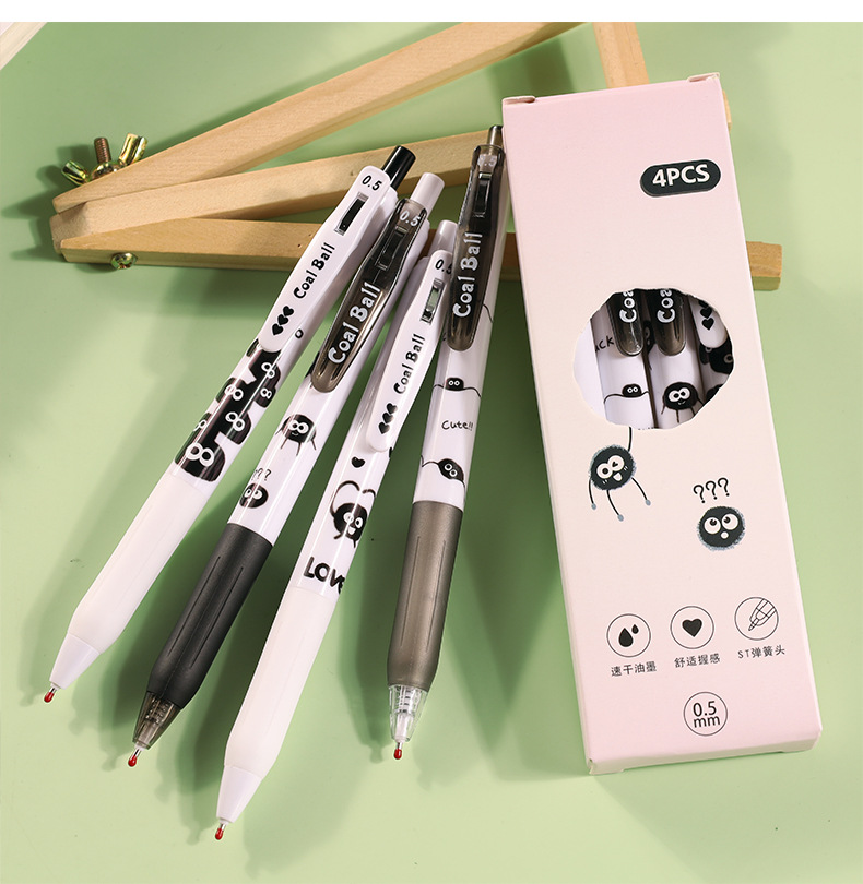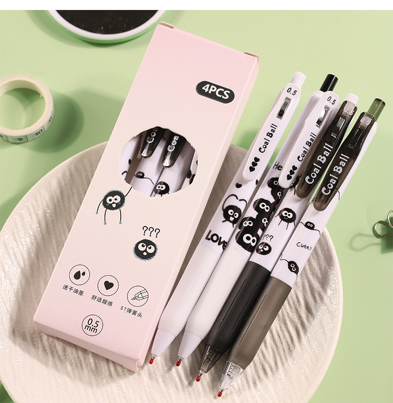 创意小煤球按动笔套装学生用顺滑0.5刷题笔ST速干签字中性笔批发
