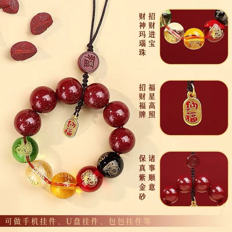 新款五路财神钥匙扣手机链挂绳手机壳吊坠好运本命年挂件