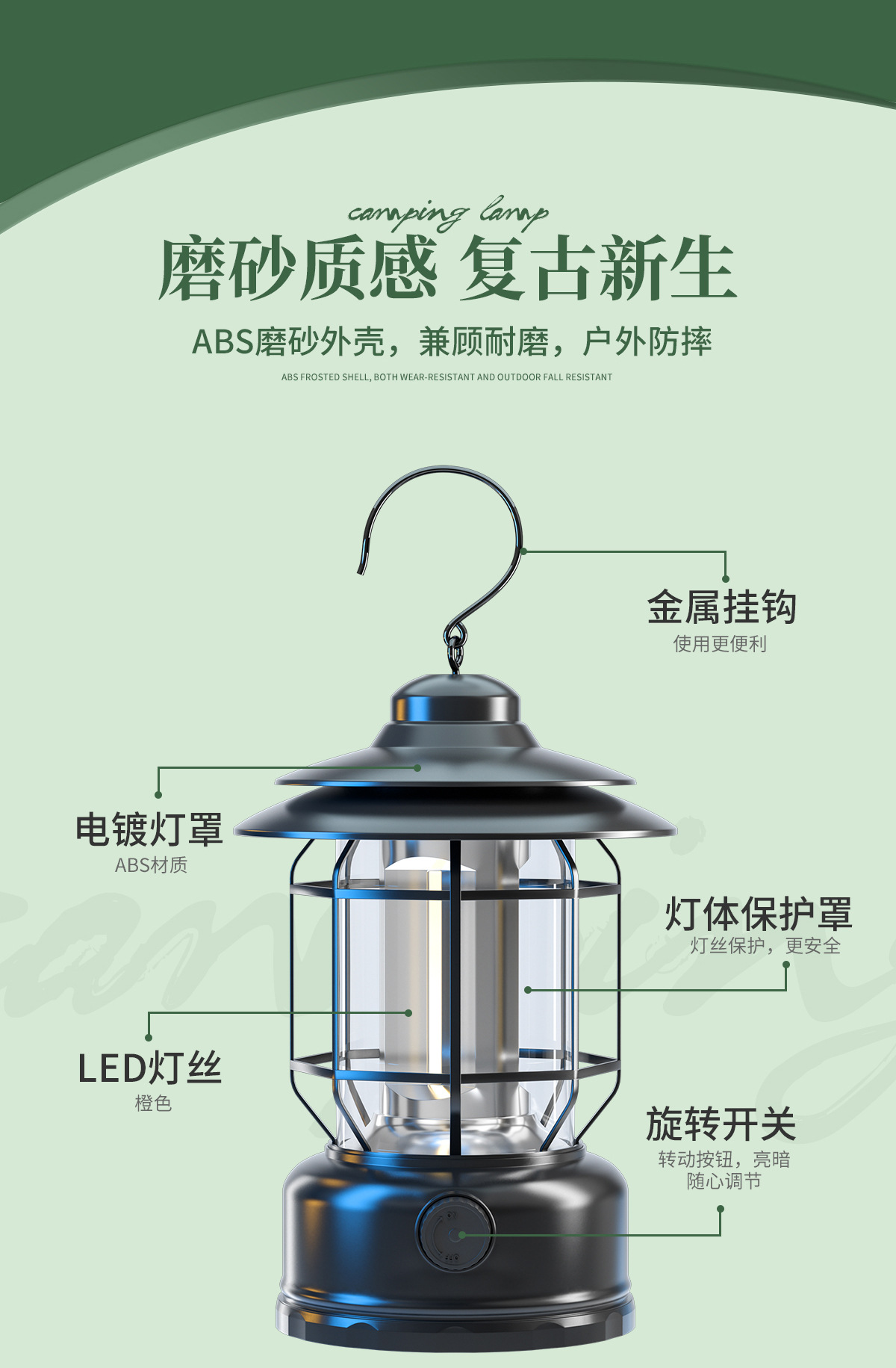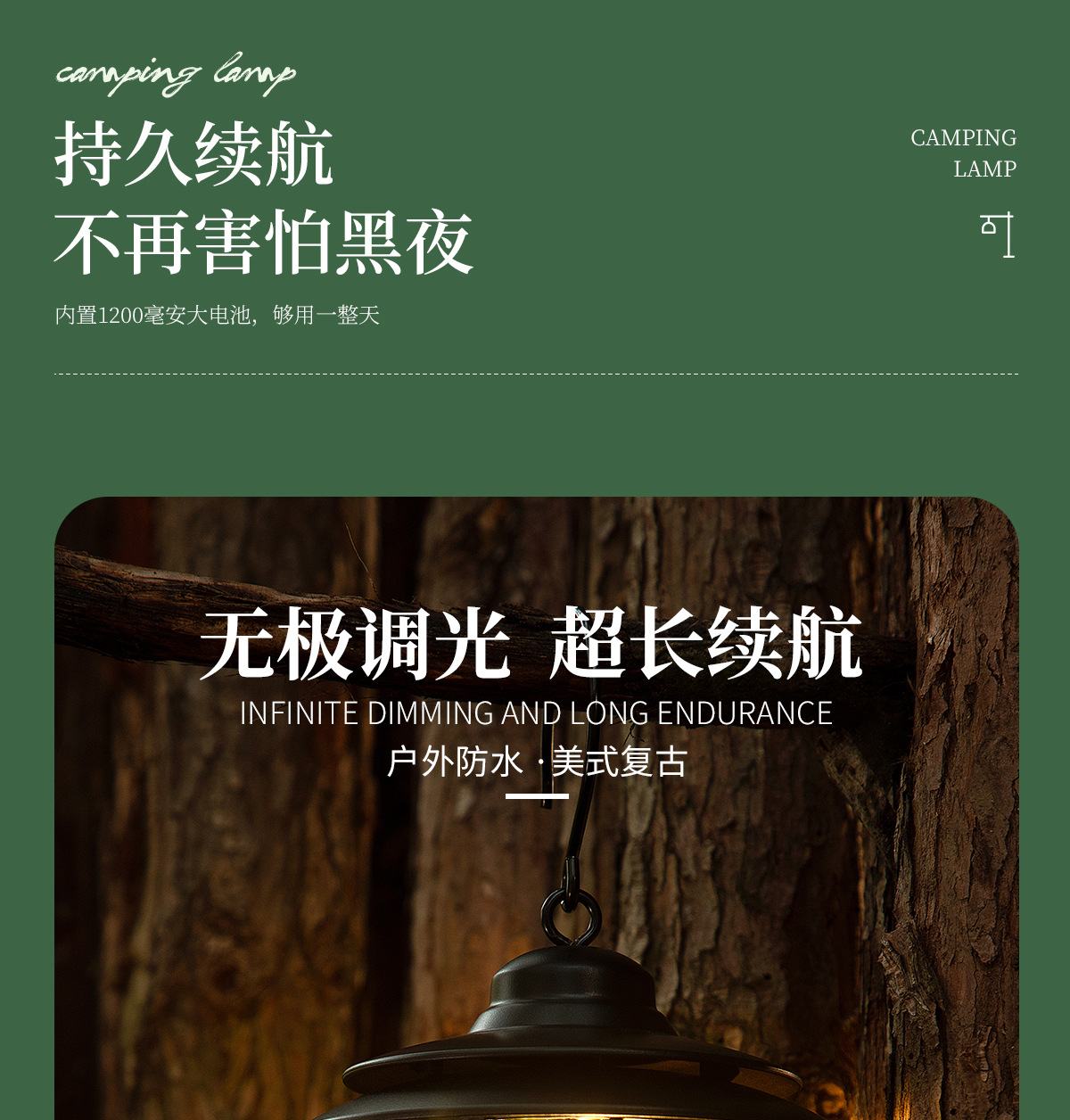 野营氛围灯升级充电款复古马灯帐篷灯无极调光太阳能户外露营灯 English | 投诉