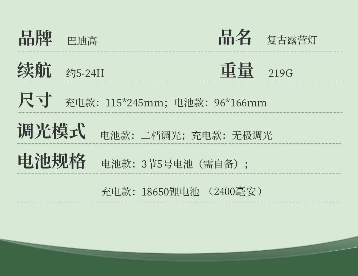 品牌: 荒野拾光 光源类型: LED 电源: 电池 V: - W: 4W 货号: - 规格: - 产地: 中国 是否跨境出口专供货源: 否 专利类型: 无 外贸出口认证: - 质检报告编号: - 重量: 0.1 kg/个