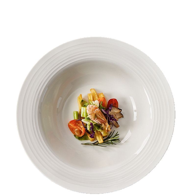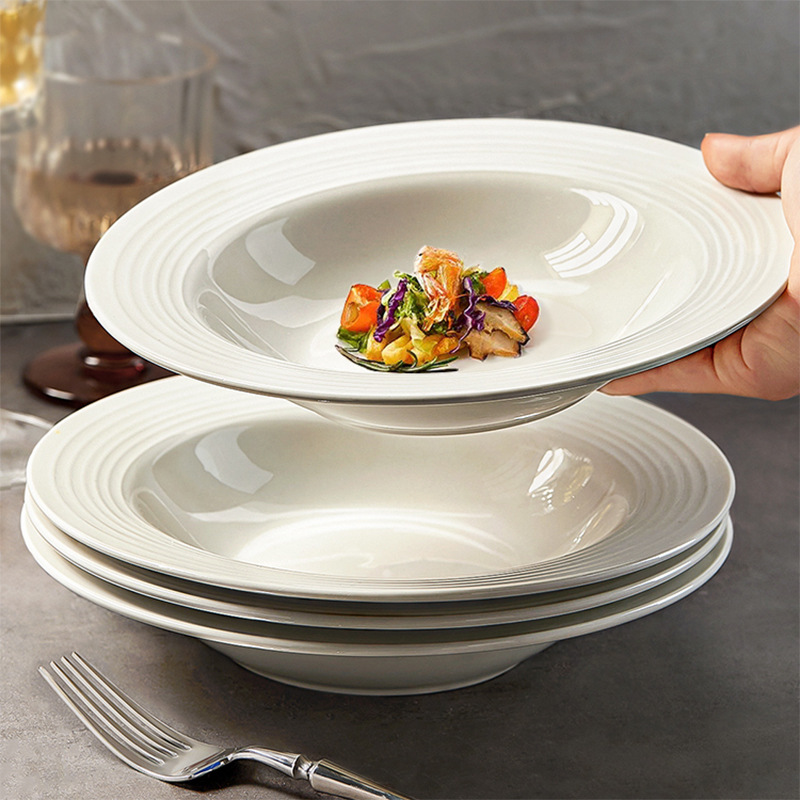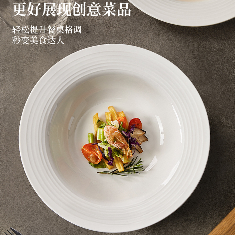 6.9元两只装!盘子菜盘8.75英寸陶瓷家用意面西餐螺纹纯白草帽盘 投诉