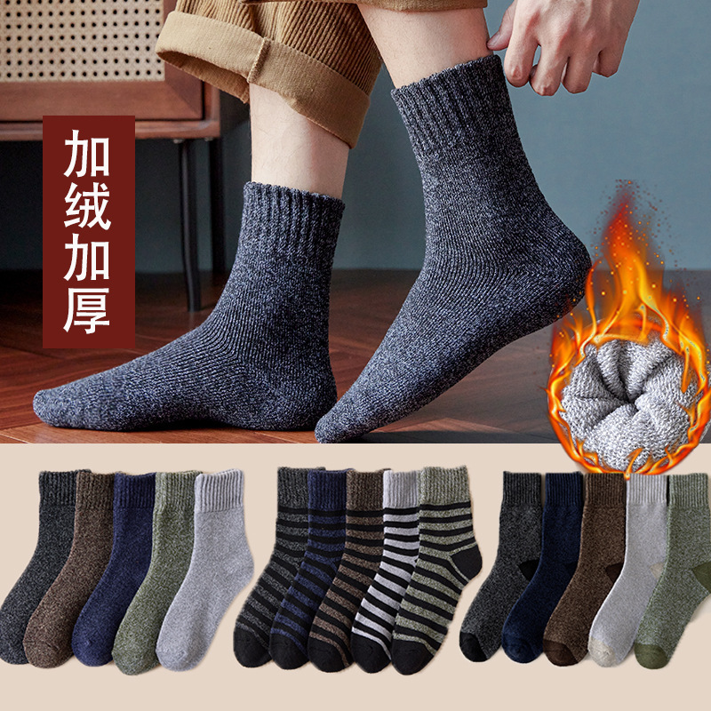 袜子男冬季加绒加厚保暖毛圈袜男士中筒地板袜并线毛巾袜冬天批发 English | 投诉