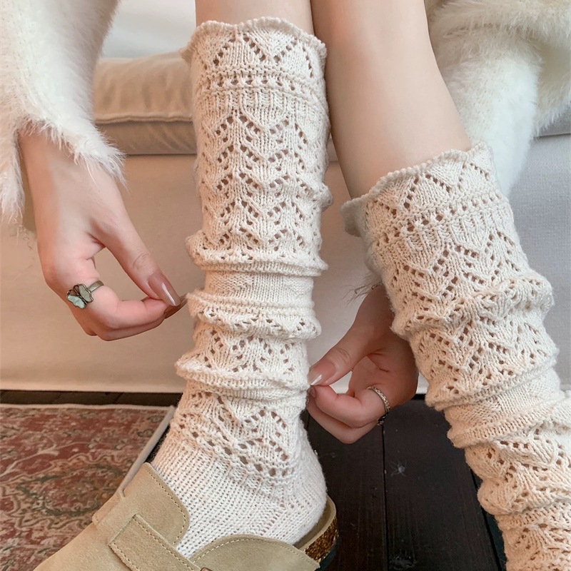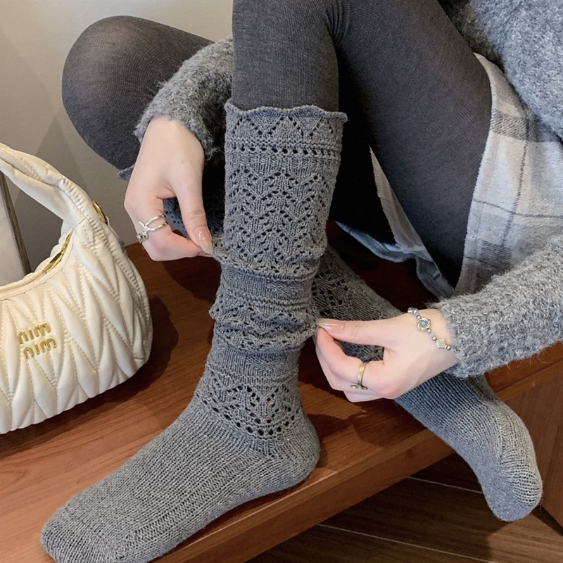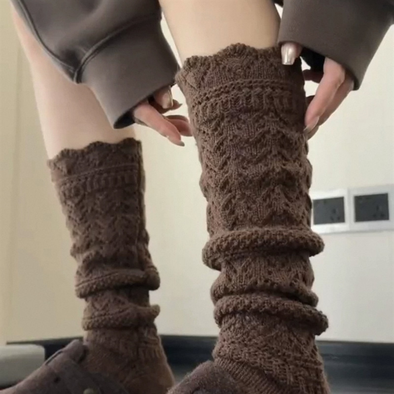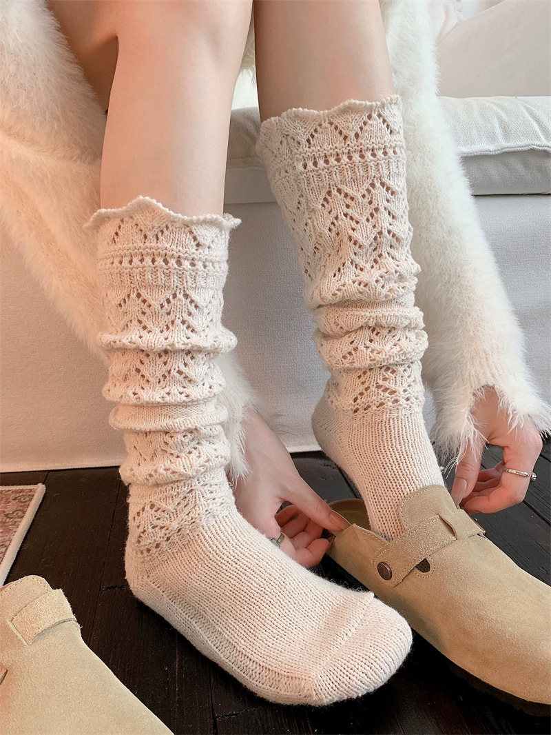 复古羊毛堆堆袜子女秋冬保暖针织镂空小腿袜韦雪同款毛线花边长袜 English | 投诉