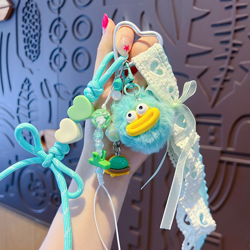 创意diy大嘴毛球手绳钥匙扣挂件情侣搞怪miu系包包钥匙链挂饰批发