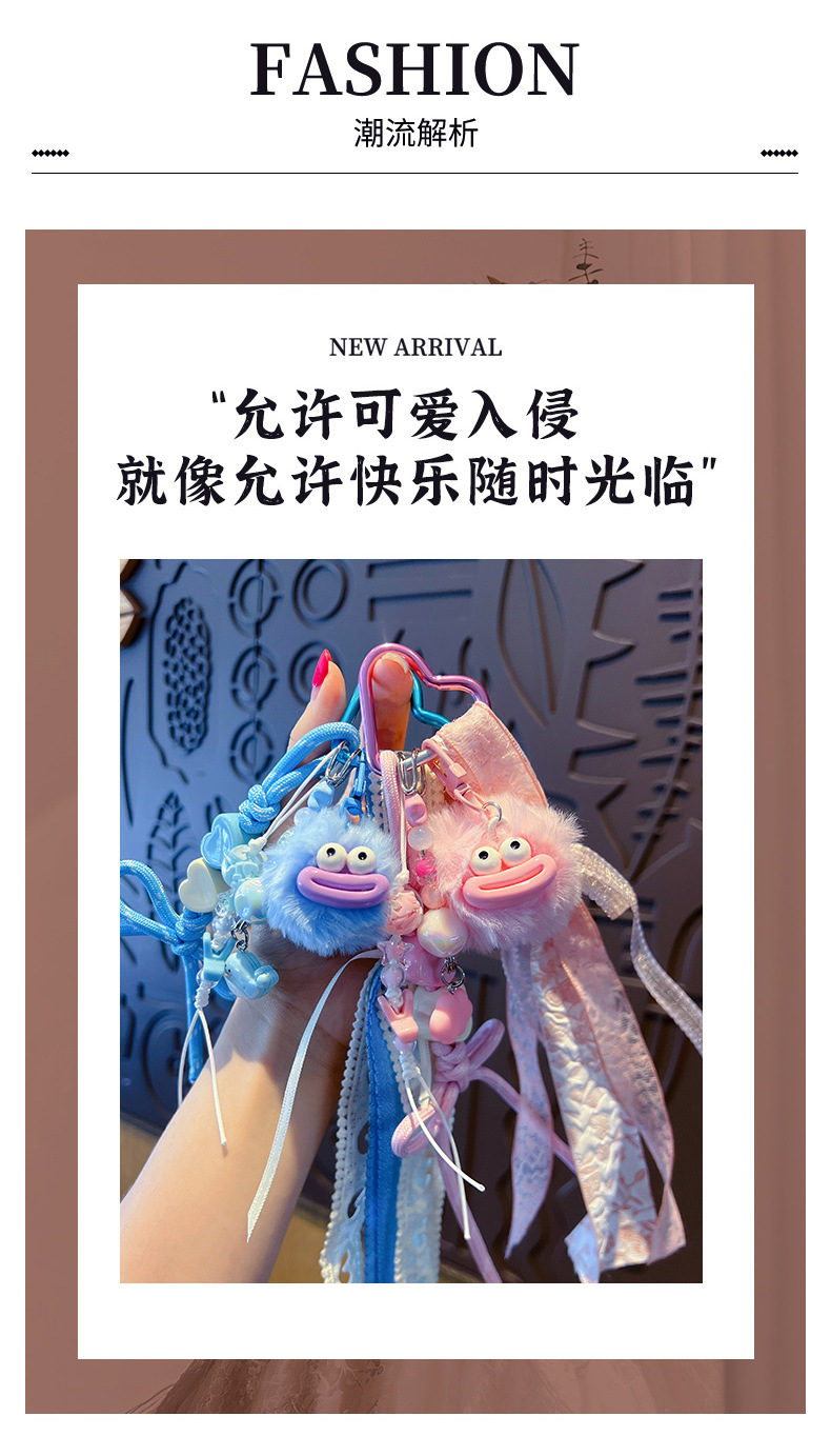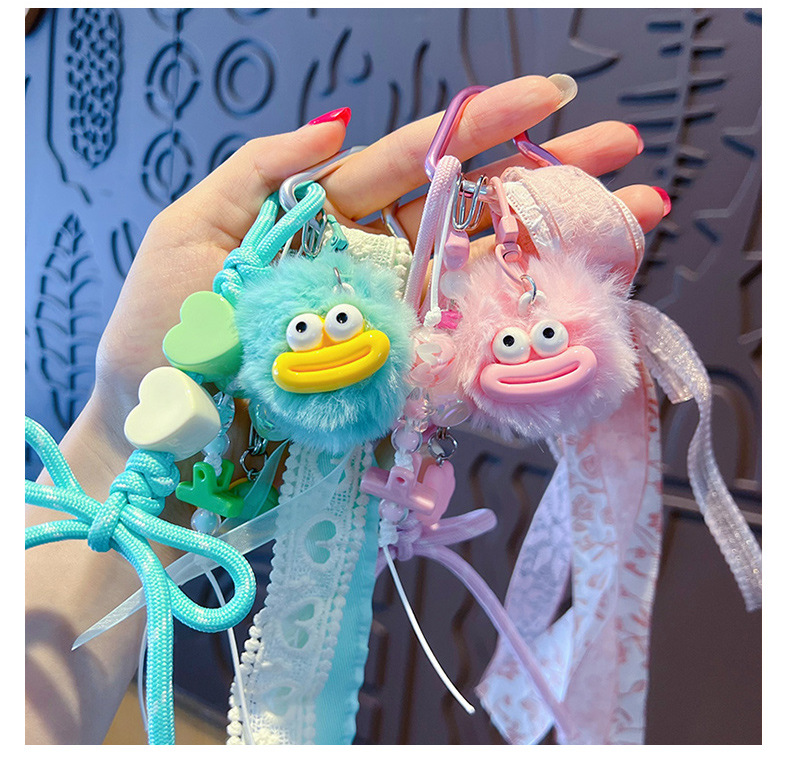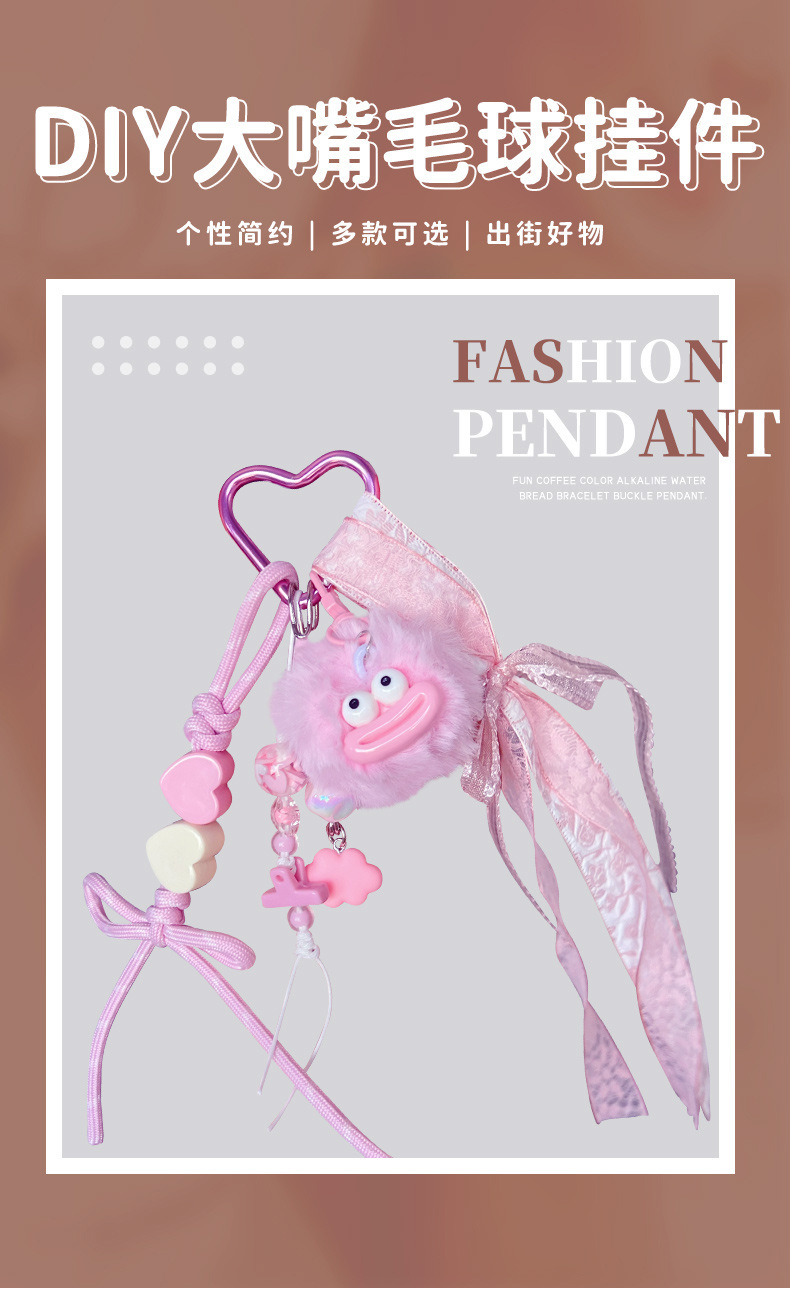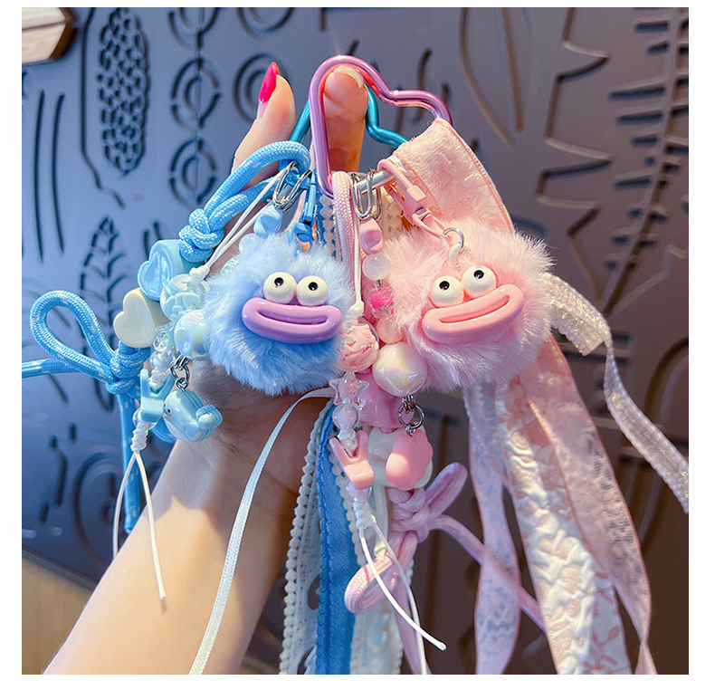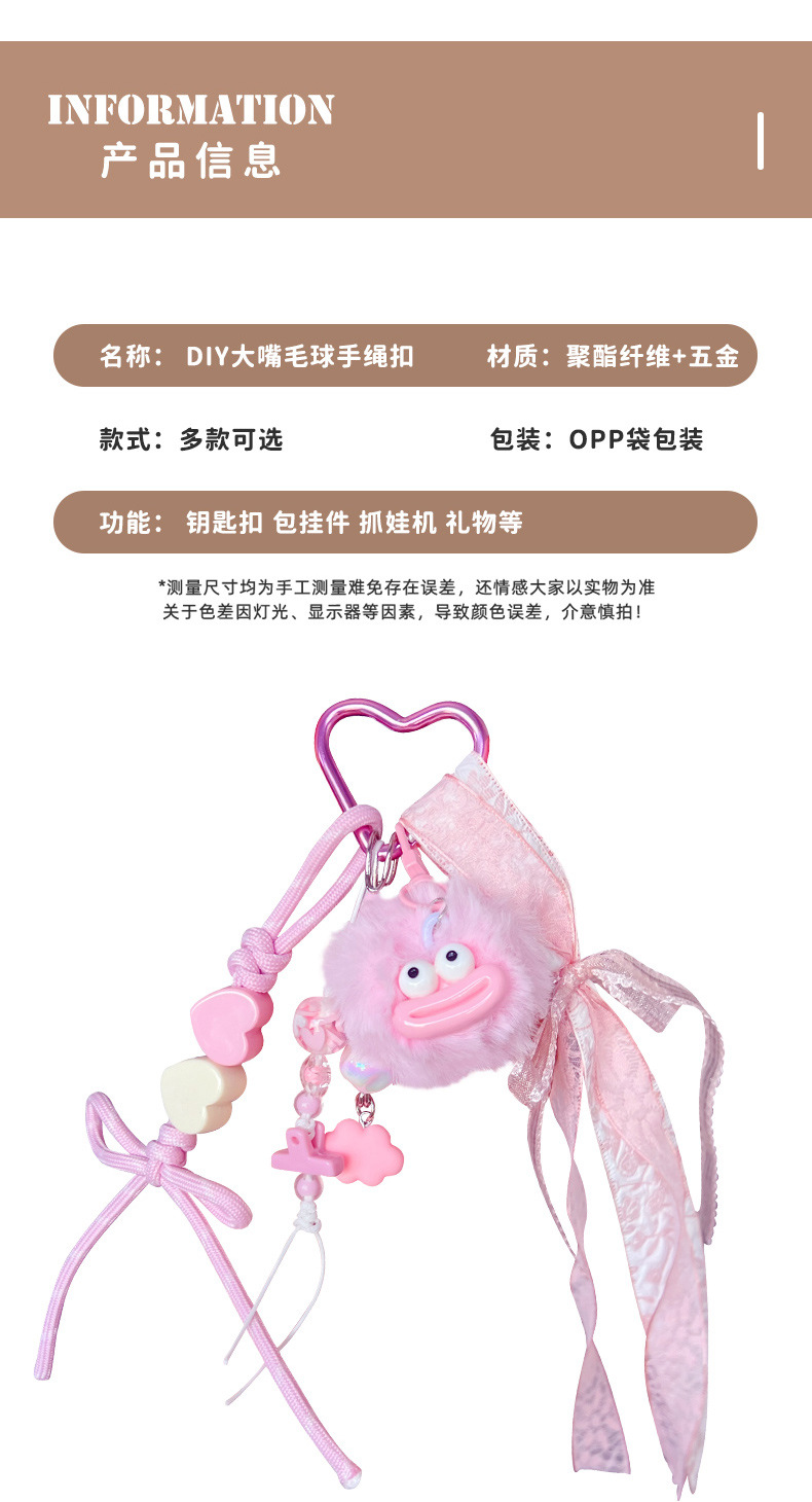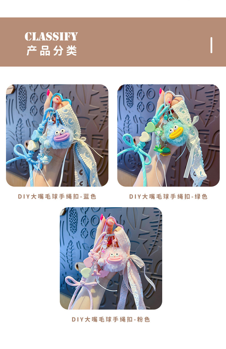 创意diy大嘴毛球手绳钥匙扣挂件情侣搞怪miu系包包钥匙链挂饰批发 English | 投诉