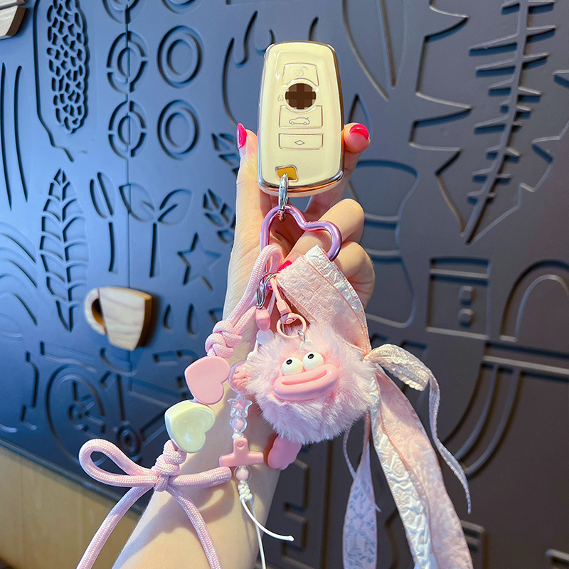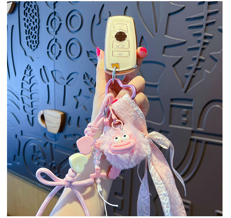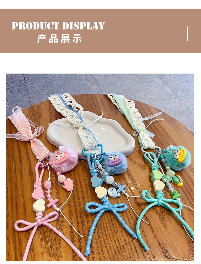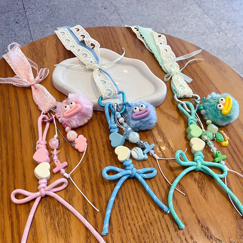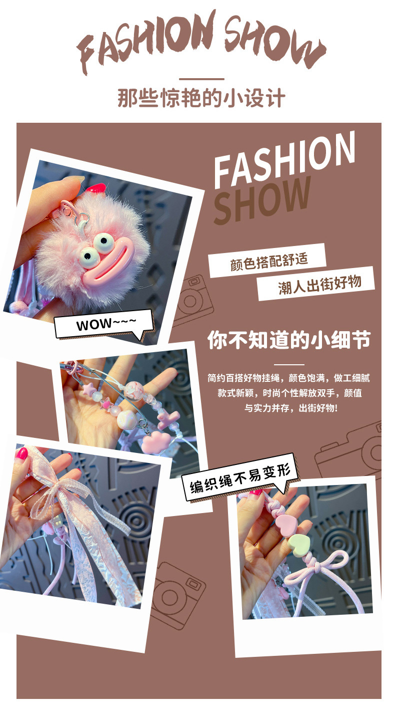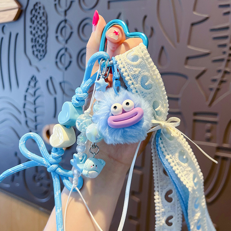创意diy大嘴毛球手绳钥匙扣挂件情侣搞怪miu系包包钥匙链挂饰批发 English | 投诉