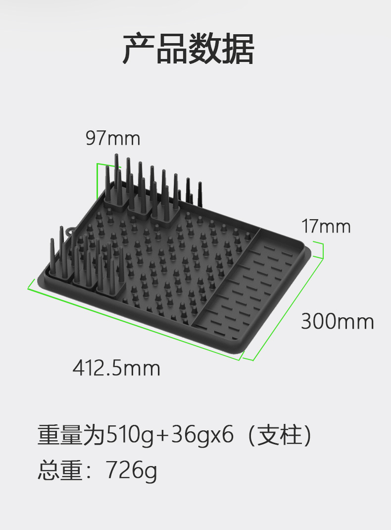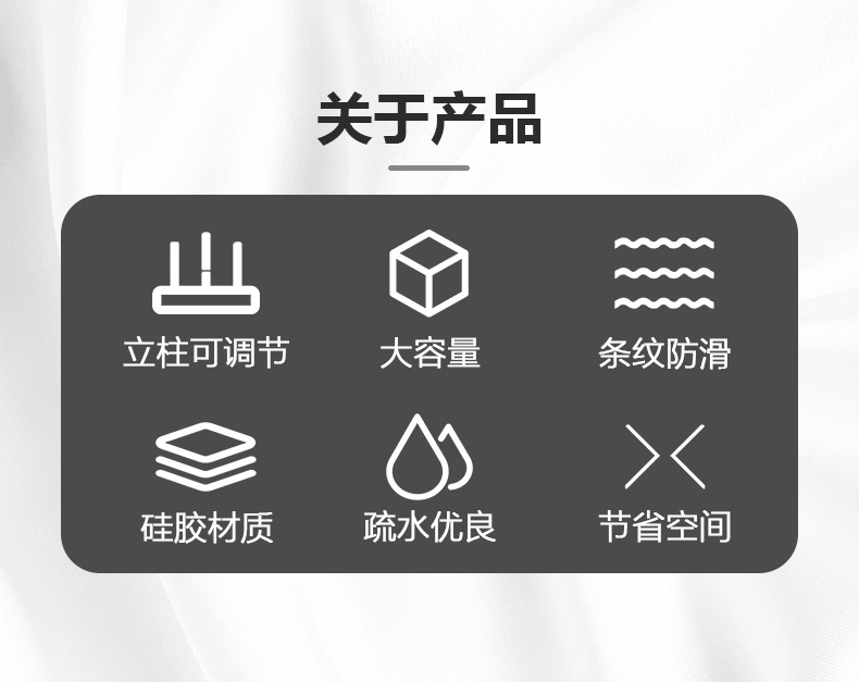 品牌: 昌盛 货号: 0702 功能: 可折叠,多用途,可移动,免安装 材质: 硅胶 是否进口: 否 置物架分类: 置地 产地: 东莞 产品上市时间: 2025夏季 价格段: 20-30元 层数(规格): 黑色-硅胶碗碟架,灰色-硅胶碗碟架 是否有专利: 无 主要下游平台: 其他 主要销售地区: 其他 有可授权的自有品牌: 否 是否跨境出口专供货源: 是 风格: 现代简约 用途: 碗碟碗筷置物架 特点: 可拆卸 自由组合 用途2: 硅胶沥水垫 重量: 0.5 kg/件