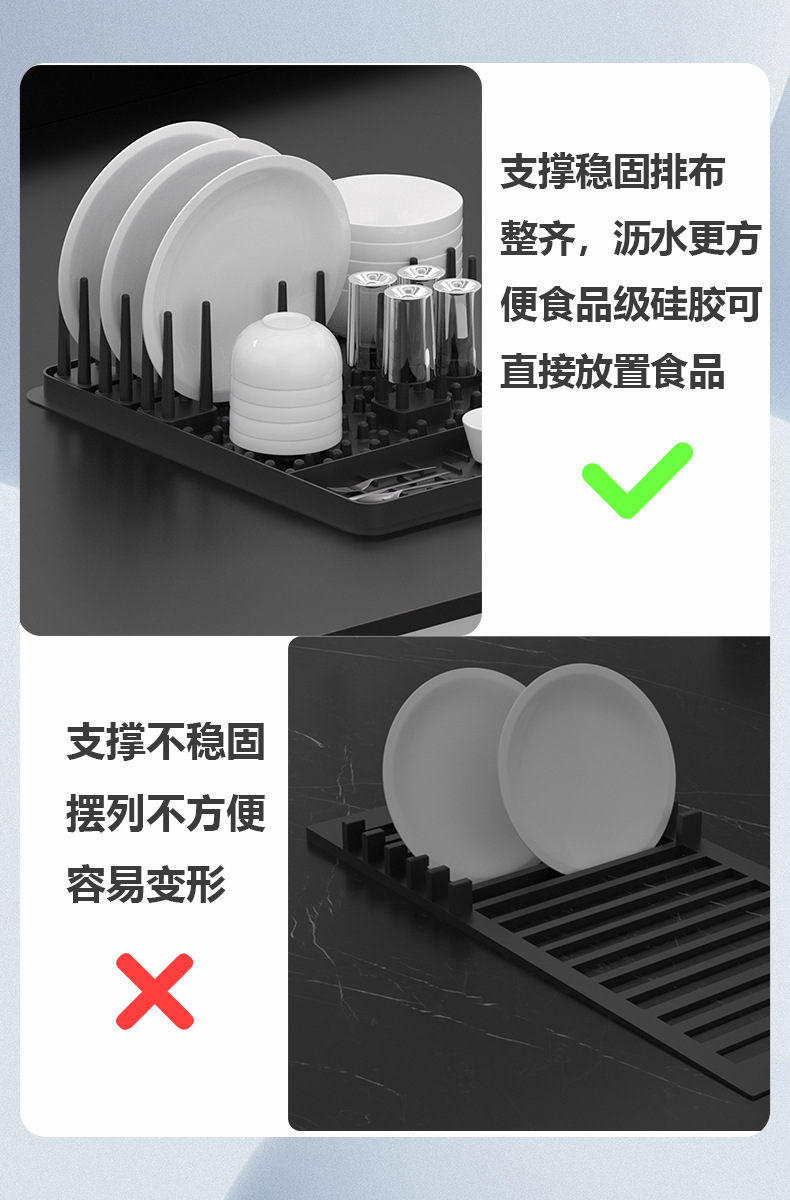 硅胶碗碟沥水架厨房置物架台面多功能可拆卸碗筷碗盘餐具收纳架 English | 投诉