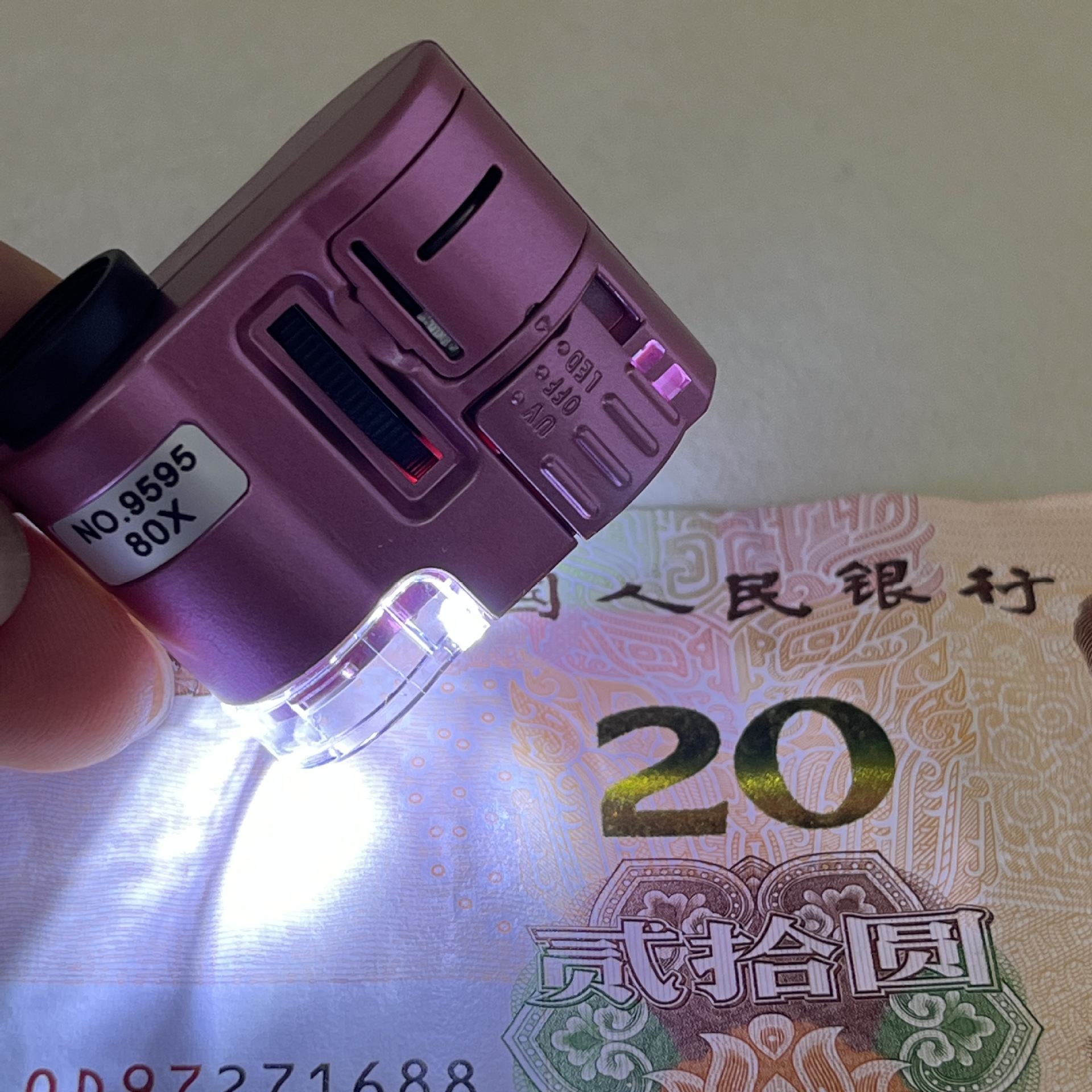 1、用于珠宝鉴定、金融、财税、集邮、电子行业观察钞票,票证、邮、币、卡的纸质和印刷网点。可准确迅速地识别假钞,分辨率极高。紫光灯检测不确切的,用该仪器能准确鉴别,真人民币在该显微镜下图纹清晰、线条连贯,假钞图纹多由点状组成、线条呈点状不连贯、色泽浅、模糊、无立体感,此款还能直接观察钱币的水印,带紫光验钞功能。