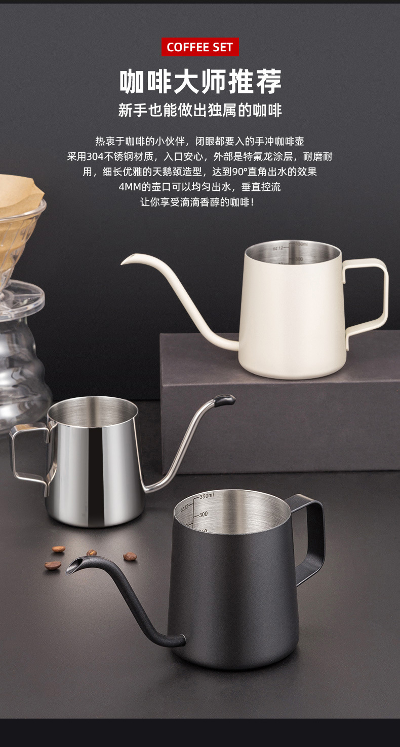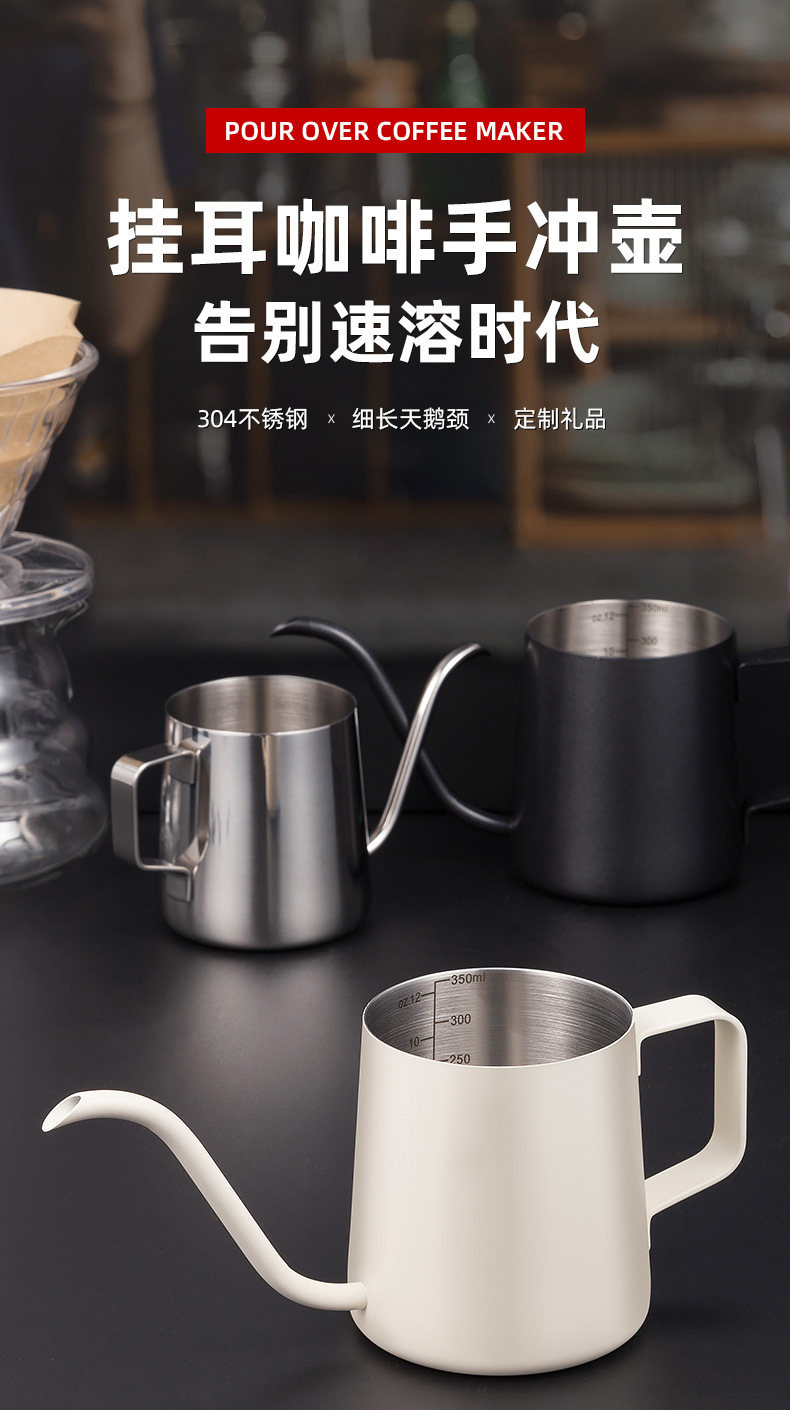 挂耳咖啡手冲壶细口长嘴不锈钢滴漏式手冲咖啡杯壶250ml350ML米白 English | 投诉
