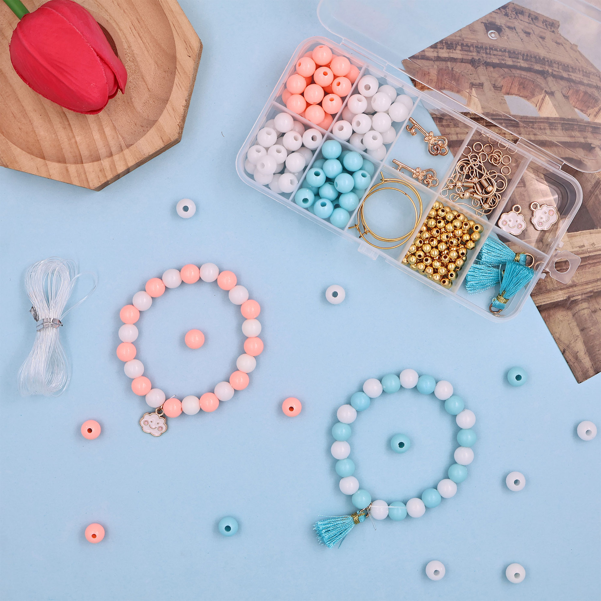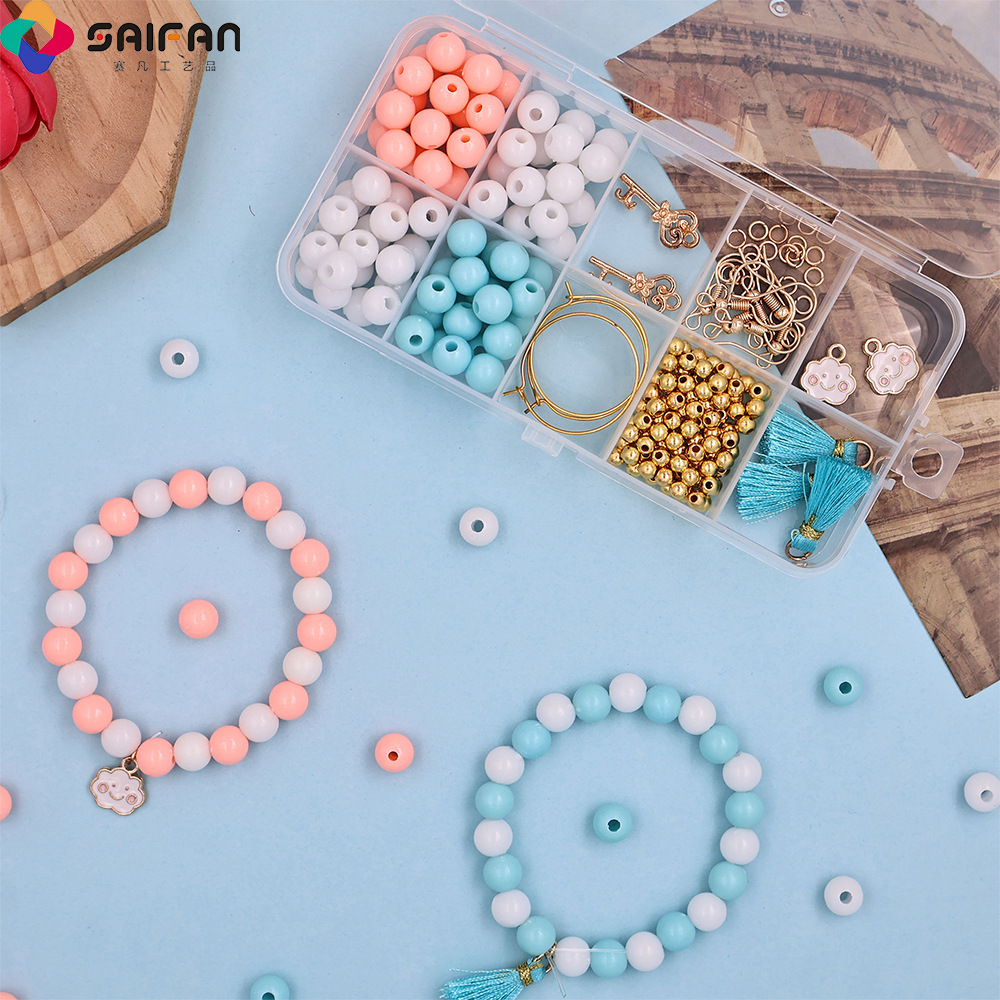 跨境8mm手链制作diy串珠配饰材料包混装全套手串穿珠饰品配件珠子 English | 投诉