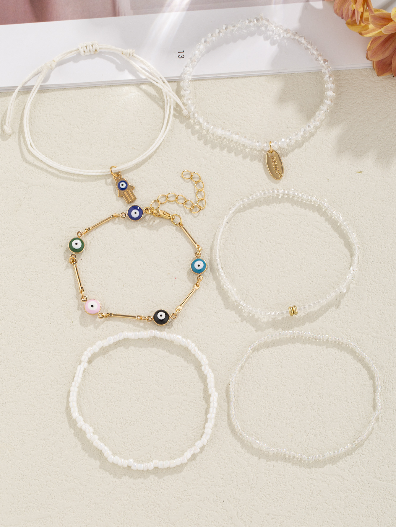时尚气质手掌恶魔之眼合金手链亚克力珠小米珠串珠手串手饰饰品