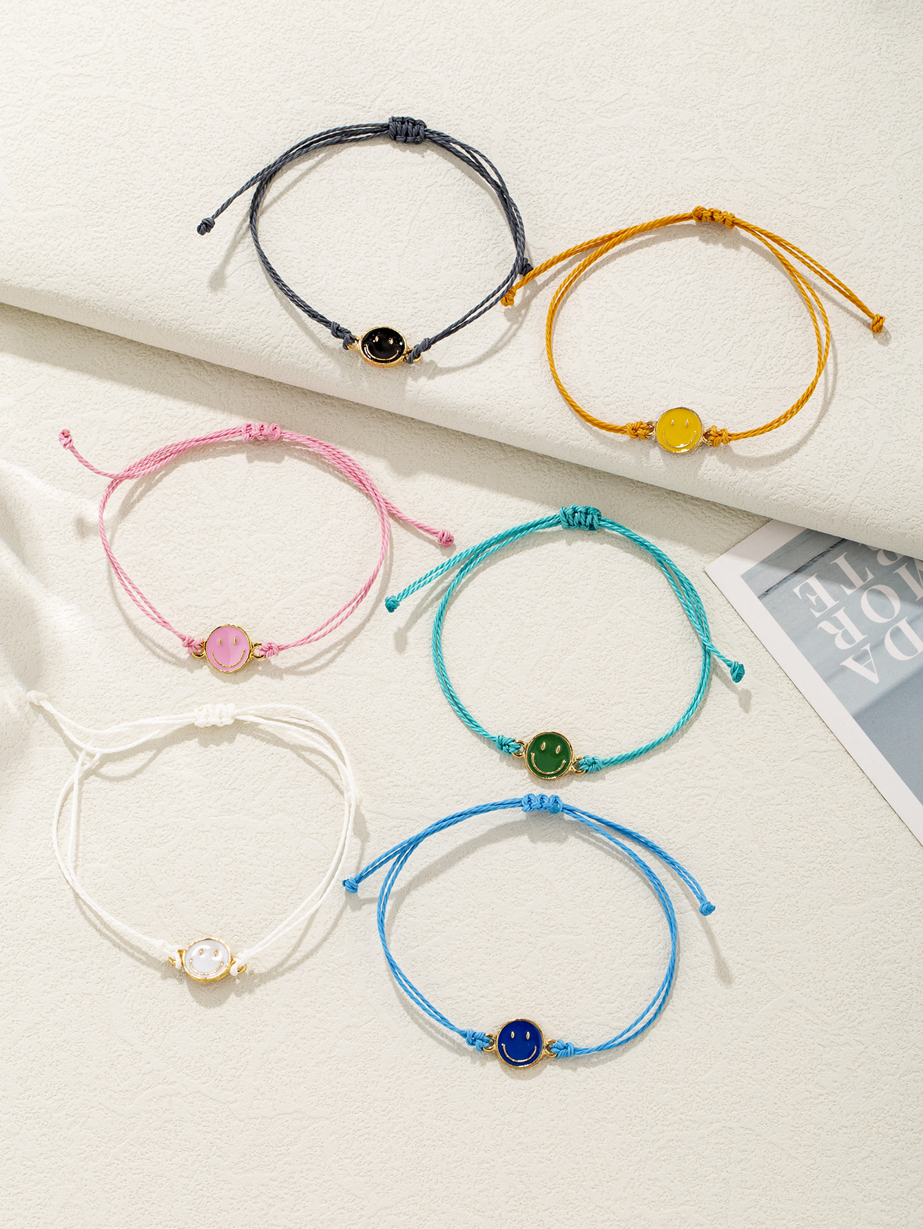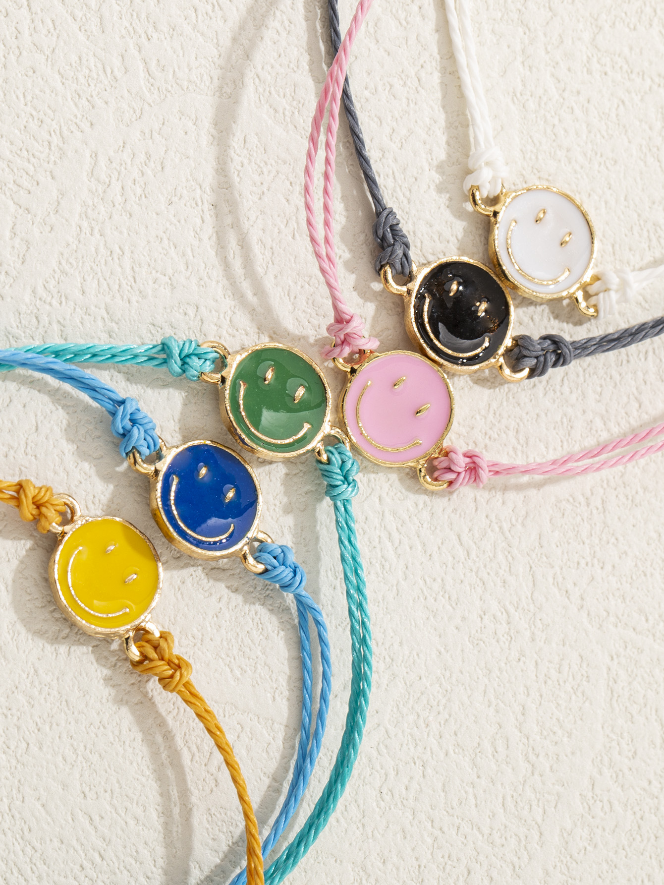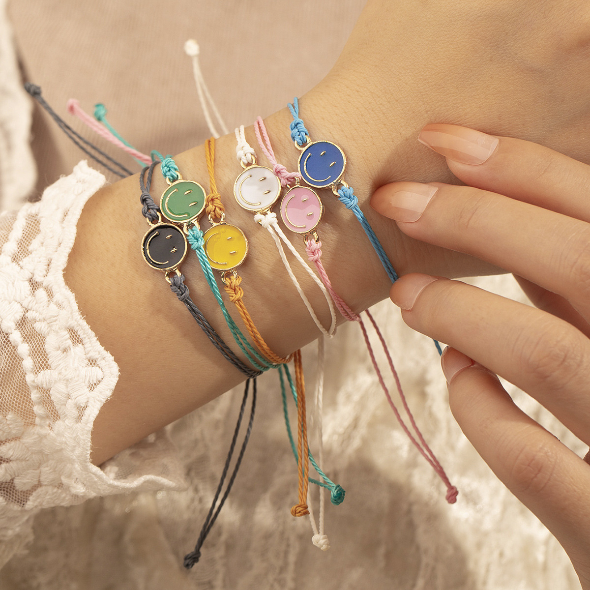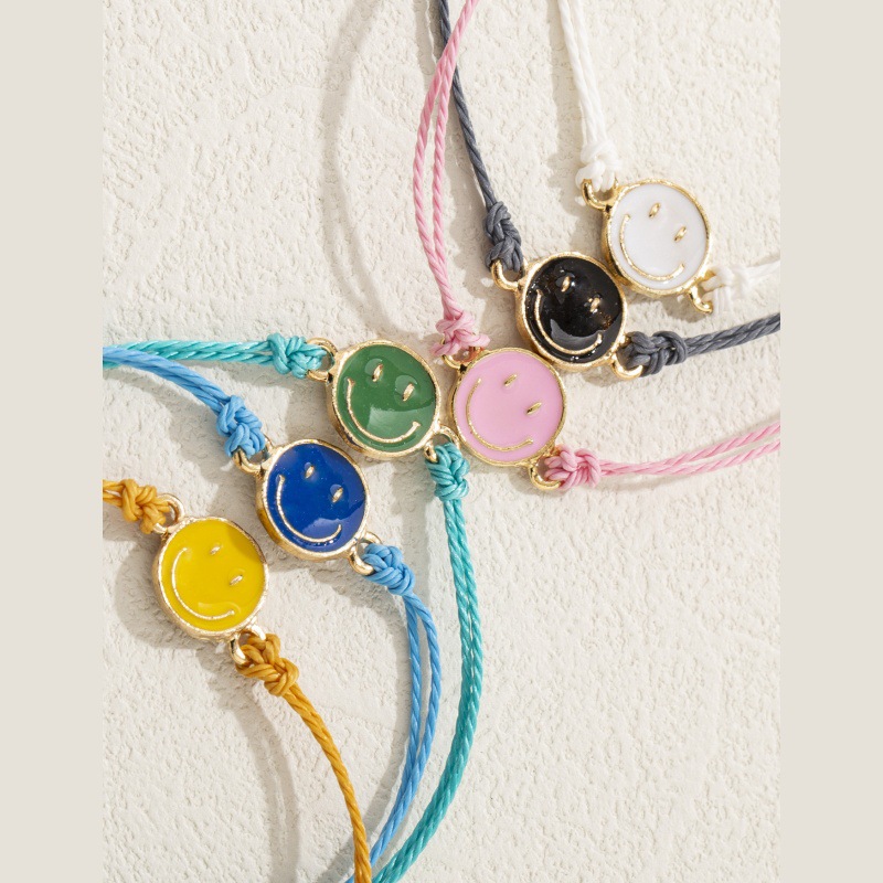 跨境个性设计滴油笑脸牌手绳时尚民族风手工编织笑脸手绳饰品手饰