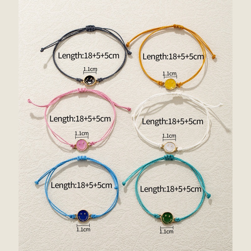 跨境个性设计滴油笑脸牌手绳时尚民族风手工编织笑脸手绳饰品手饰 投诉