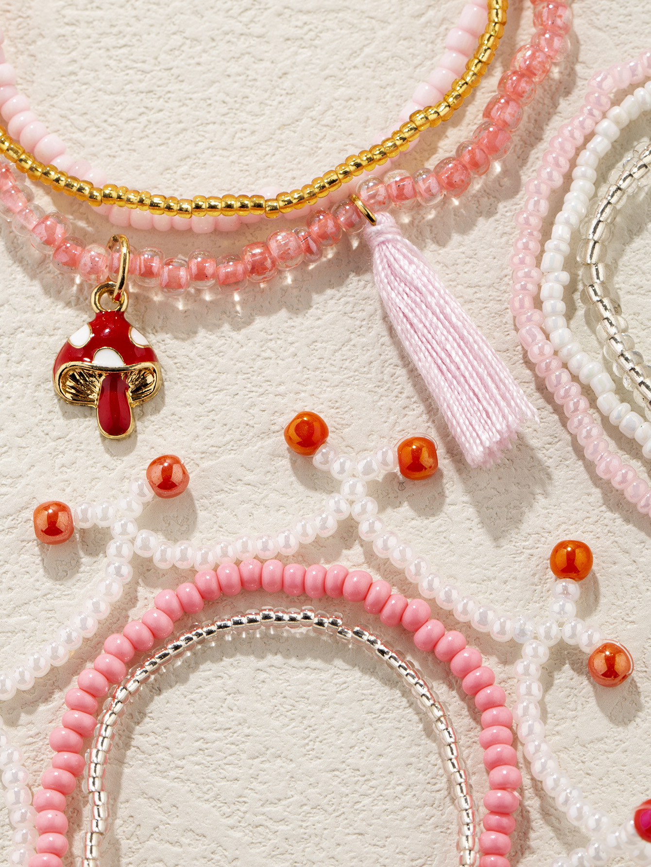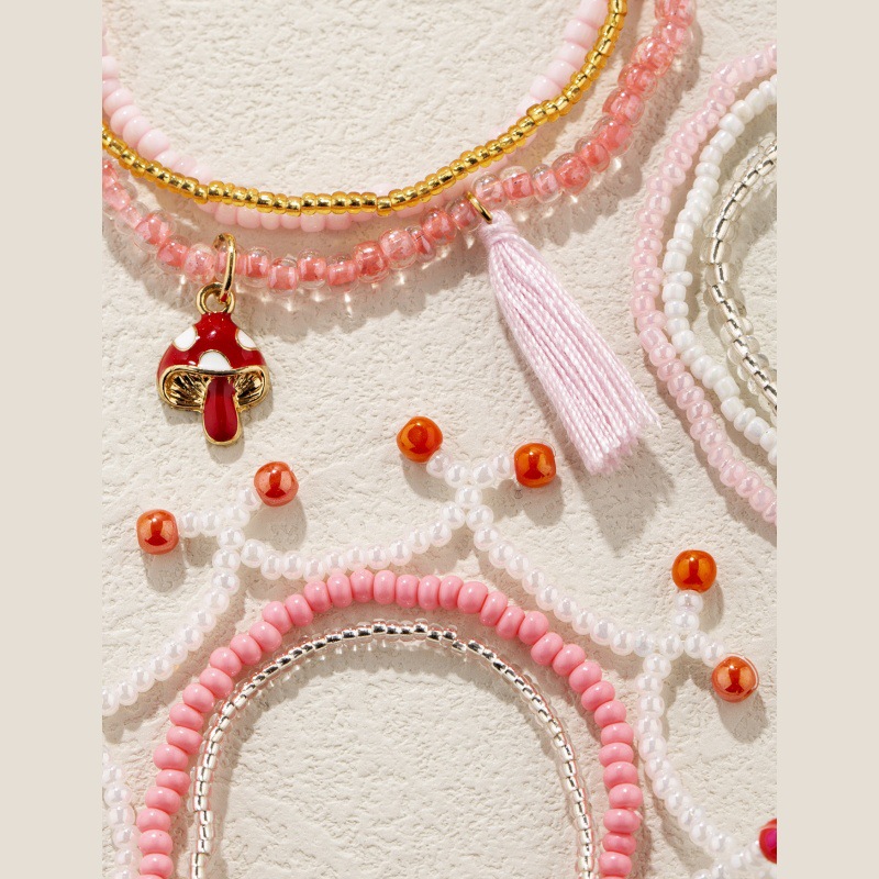 波西米亚风可爱蘑菇流苏米珠多层手串森系原创设计米珠多层手链