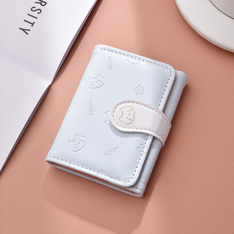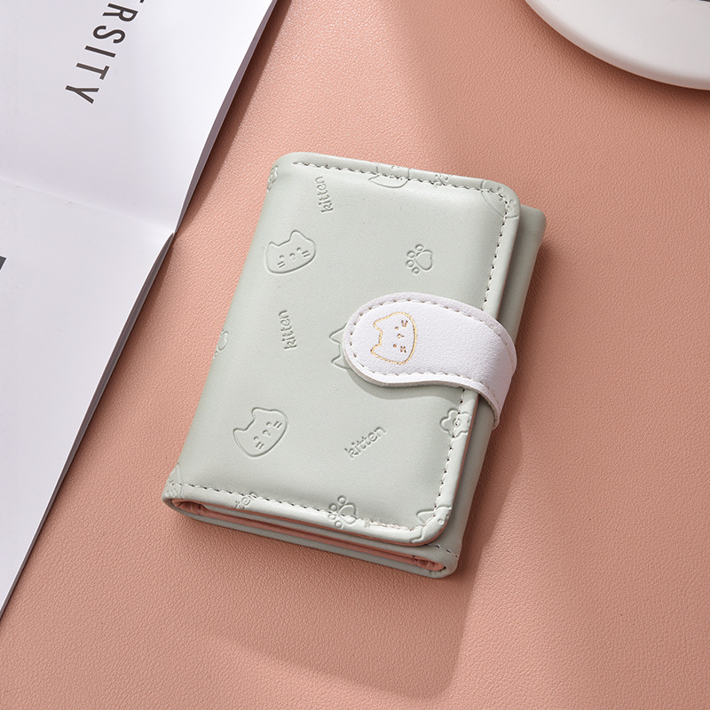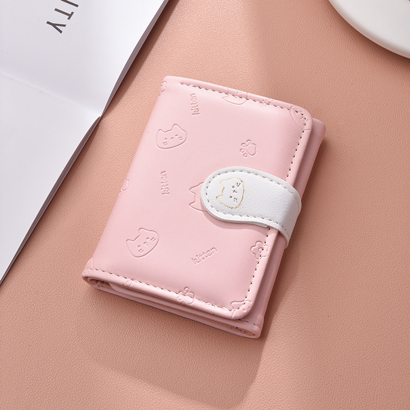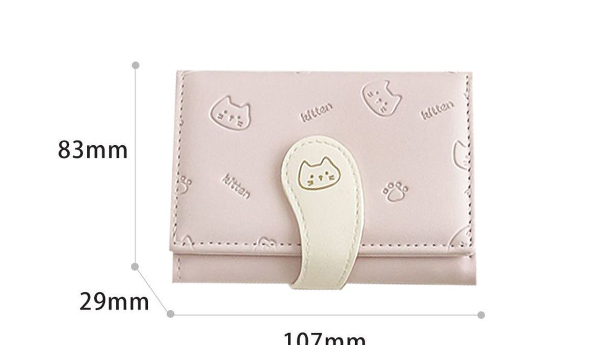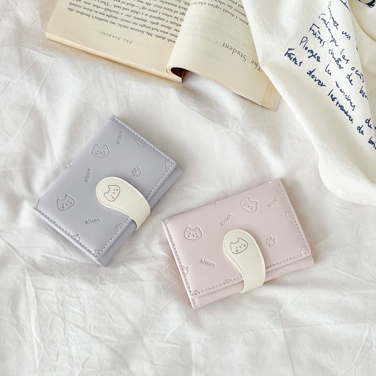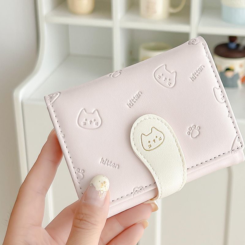 可爱卡通猫咪短款三折钱包女新款小清新多卡位小众学生零钱包卡包