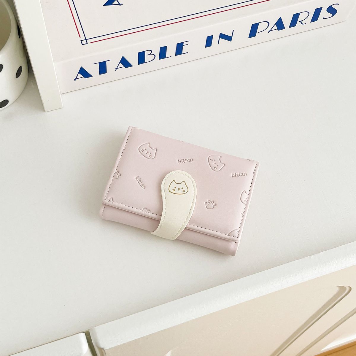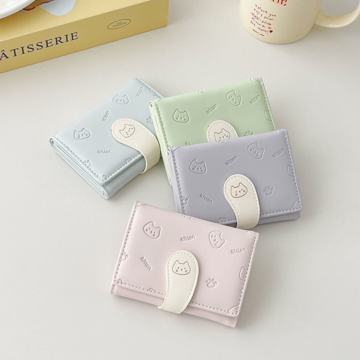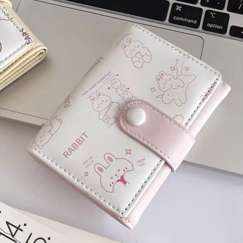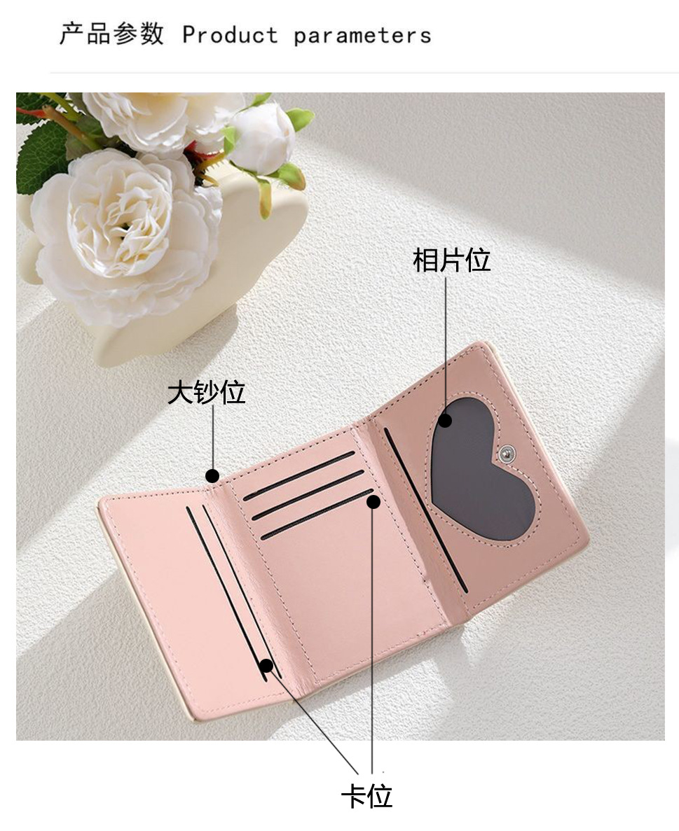 可爱卡通猫咪短款三折钱包女新款小清新多卡位小众学生零钱包卡包