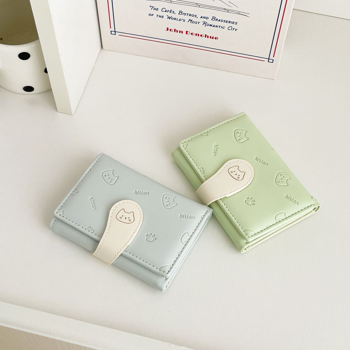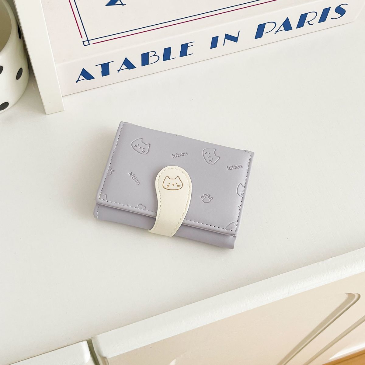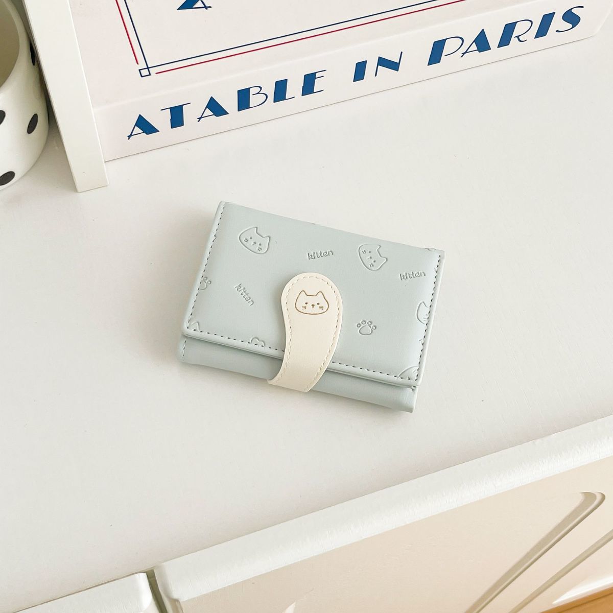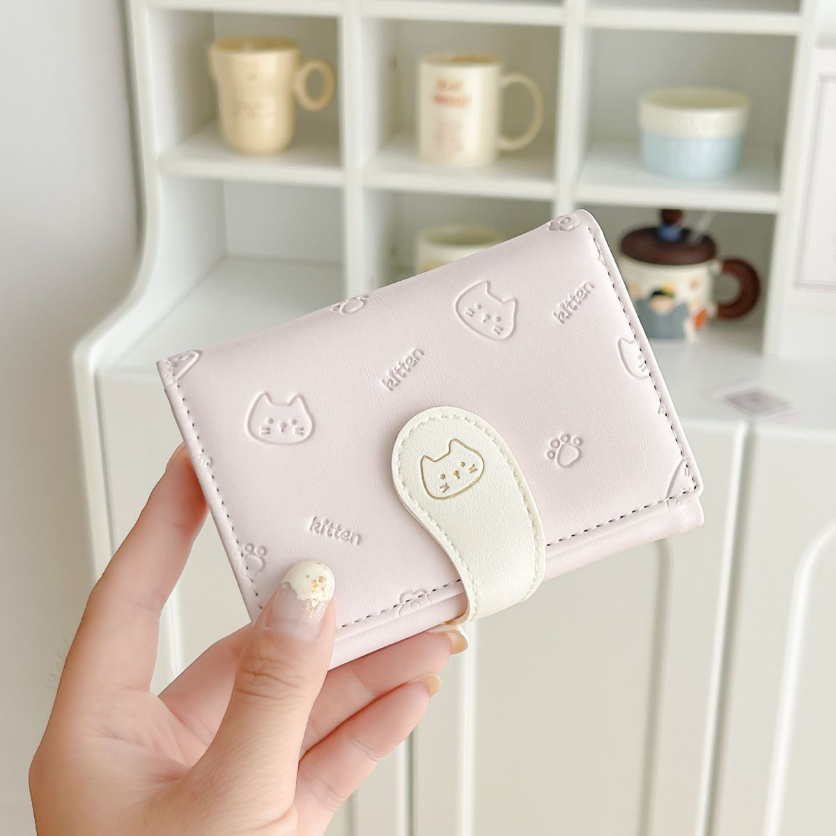 可爱卡通猫咪短款三折钱包女新款小清新多卡位小众学生零钱包卡包