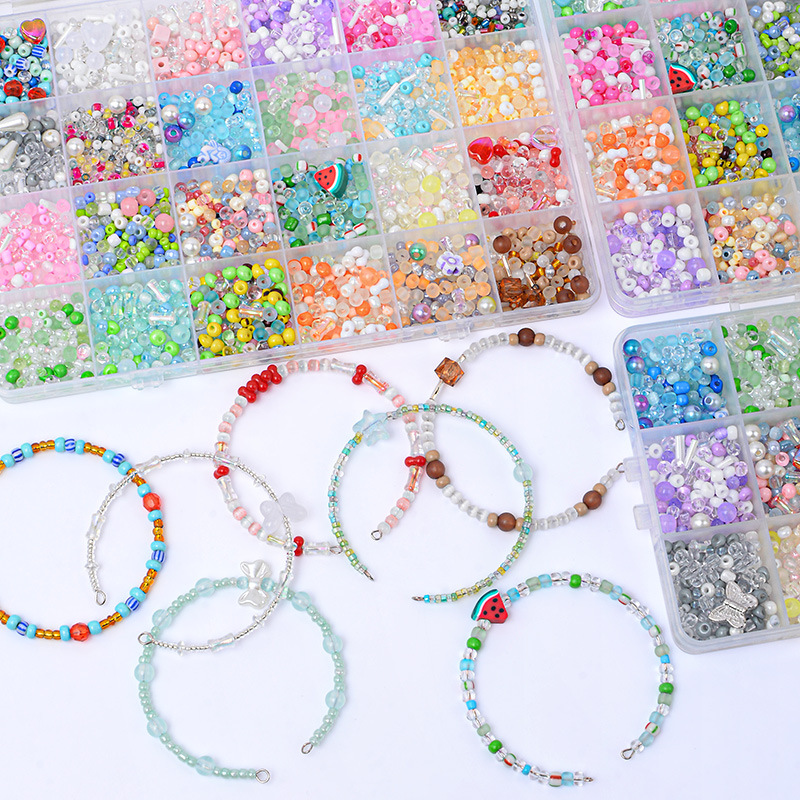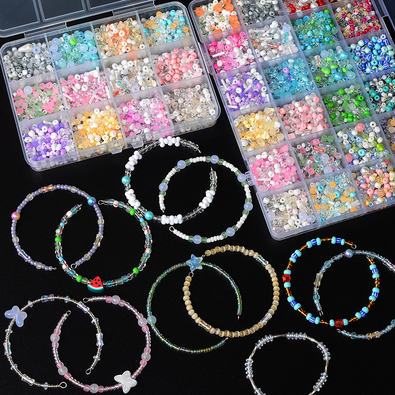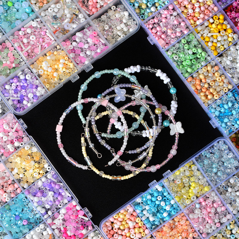 24格盒装(约3000粒约重280克约做50个手链) 【大小;2-5毫米混搭的,4-5毫米珠子偏多】