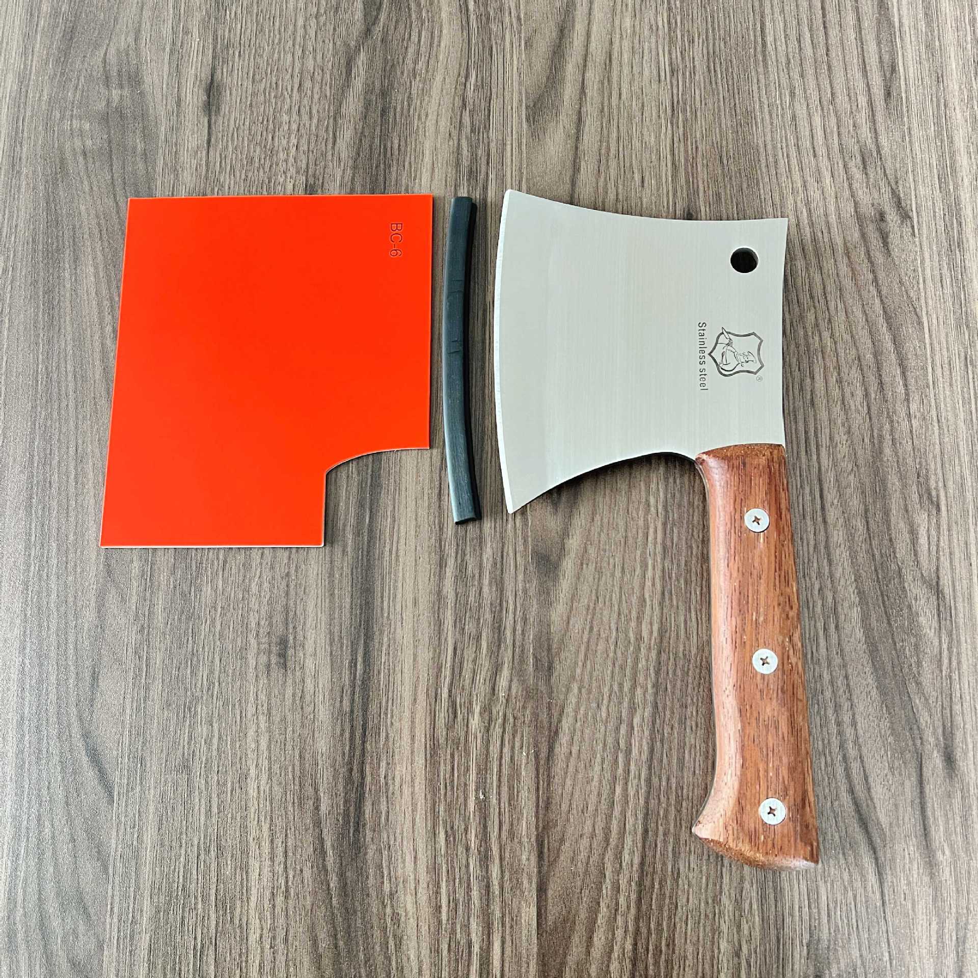 产品类别: 斩骨刀 是否进口: 否 品牌: 联铧 货号: BC-6 原产国/地区: 广东阳江 材质: 不锈钢 产地: 广东阳江 价格段: 30-40元 是否有专利: 否 是否跨境出口专供货源: 是 主要销售地区: 非洲,欧洲,南美,东南亚,北美,东北亚, 主要下游平台: ebay,亚马逊,wish,速卖通,独立 有可授权的自有品牌: 否 风格: 复古 颜色: BC-6红纸套装,BC-6盒装 刀尖角度: 60°以上 刃长: 15.2cm 刀身材质: 3Cr14 刀柄长: 14.3cm 全刀长最大值: 29.5cm 重量: 0.1 kg/把