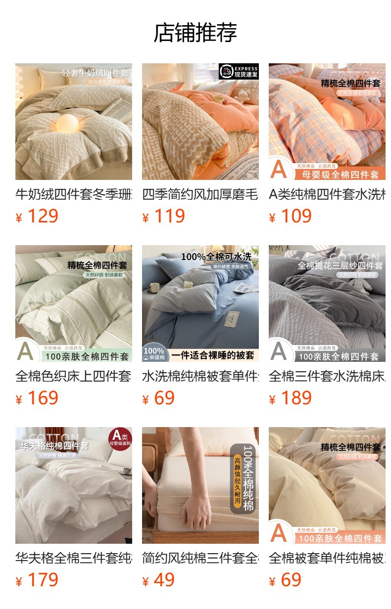 | 180x220cm单被套【精梳全棉舒适亲肤】 | ¥14500 | 199件可售 |