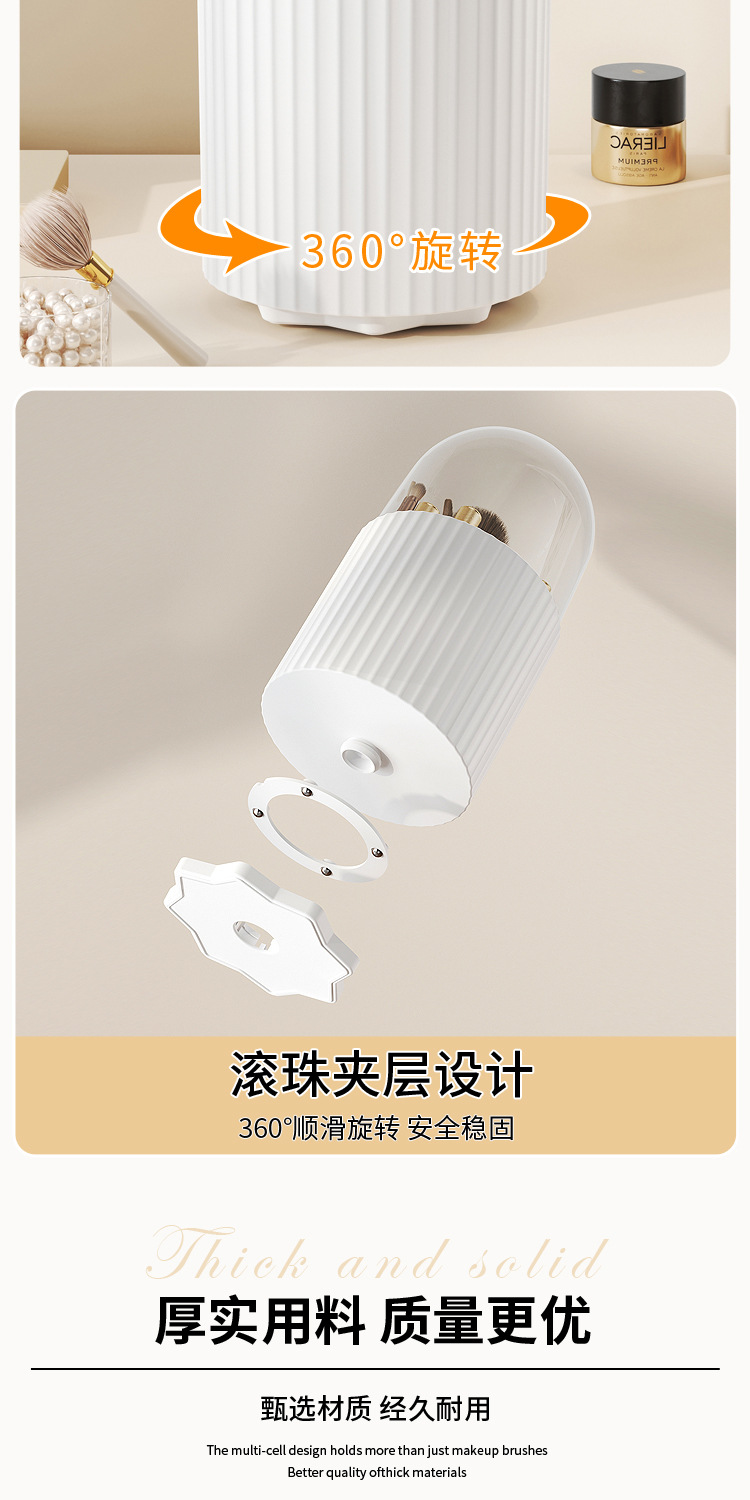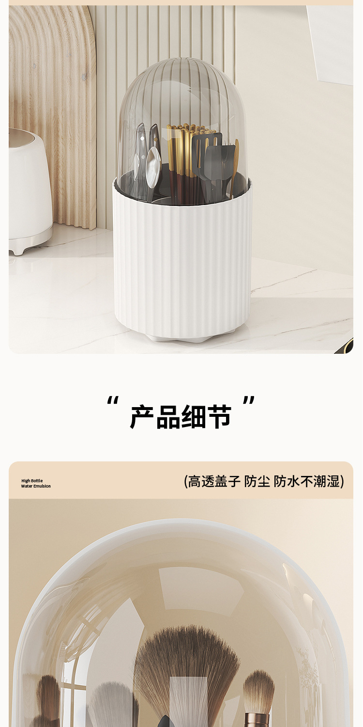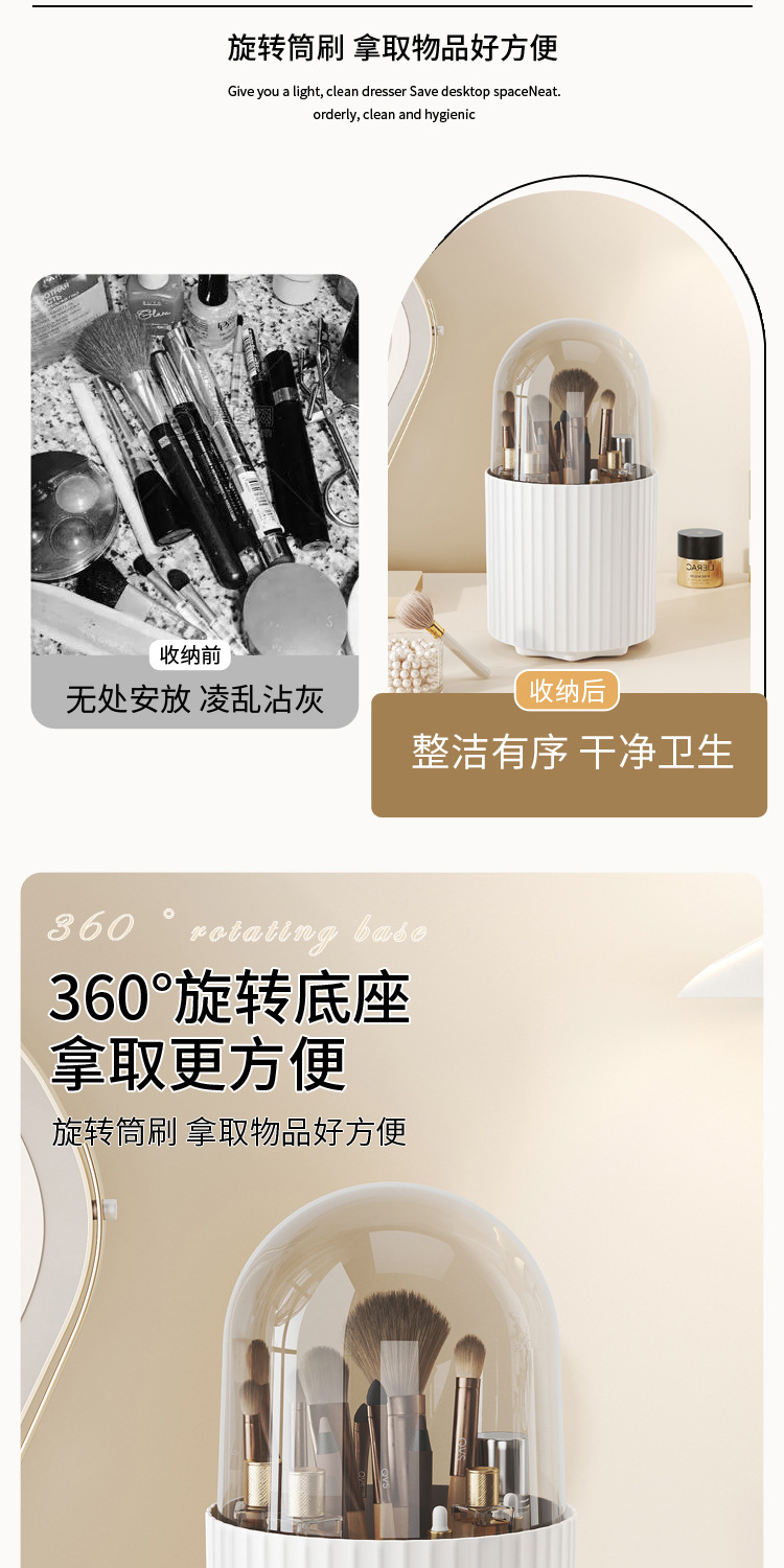 桌面旋转化妆品收纳盒梳妆台笔筒口红眼影置物架防尘化妆刷收纳筒 English | 投诉