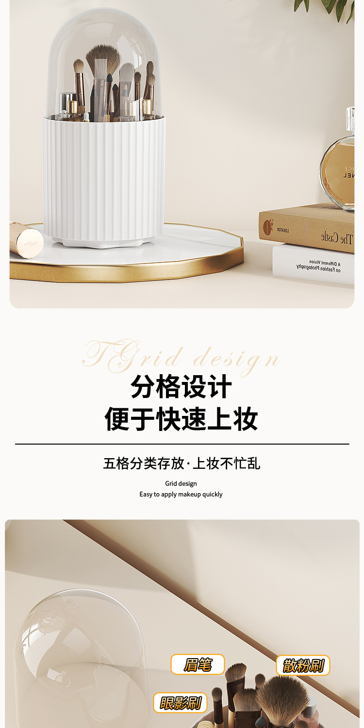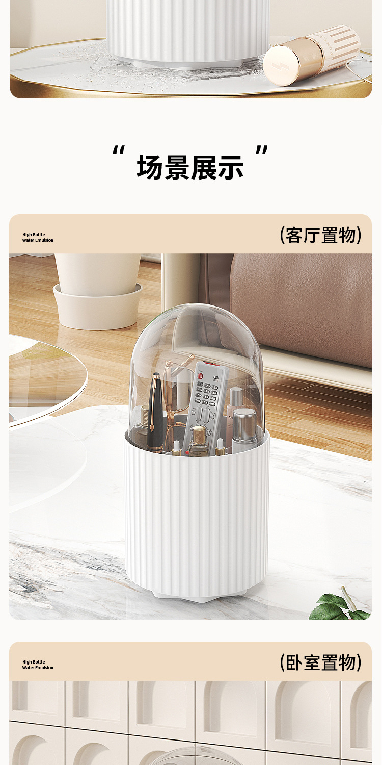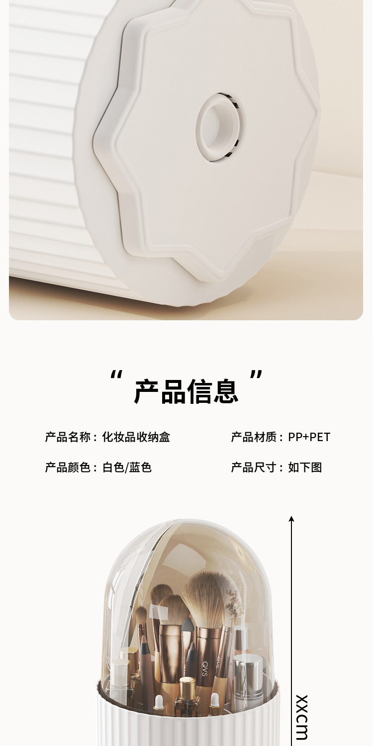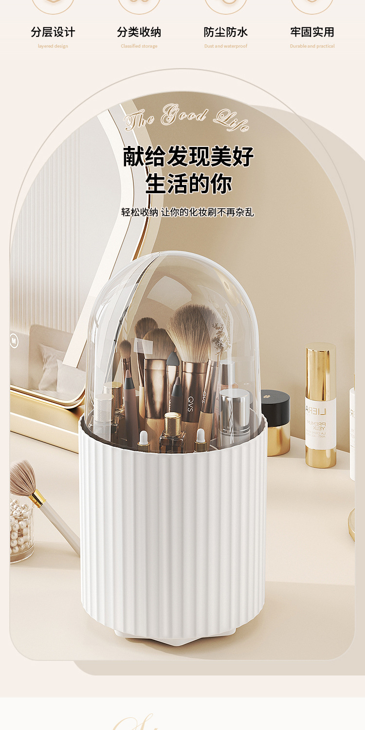 桌面旋转化妆品收纳盒梳妆台笔筒口红眼影置物架防尘化妆刷收纳筒 English | 投诉