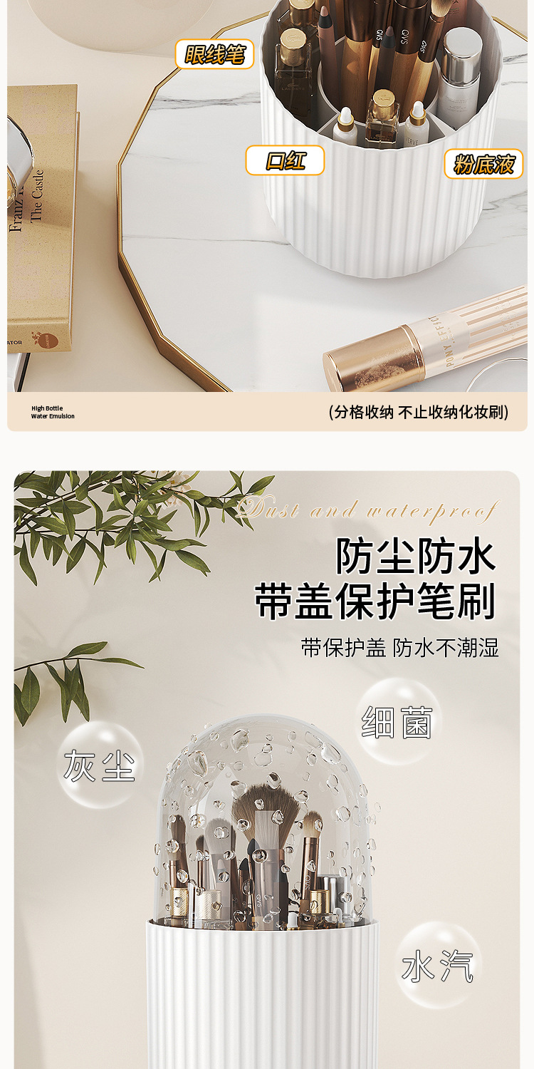 桌面旋转化妆品收纳盒梳妆台笔筒口红眼影置物架防尘化妆刷收纳筒