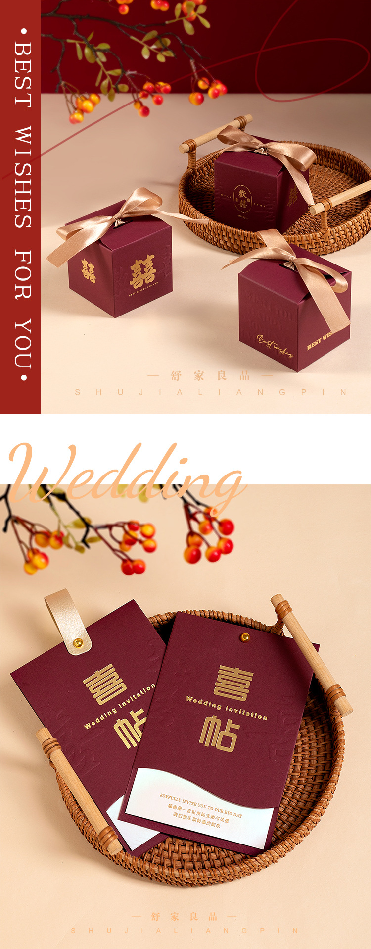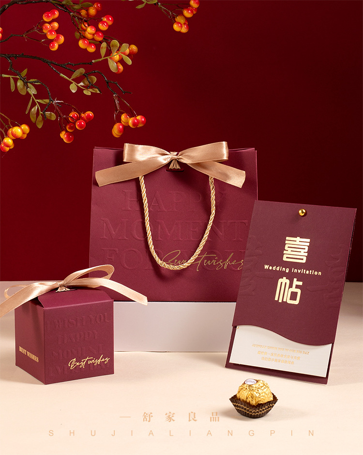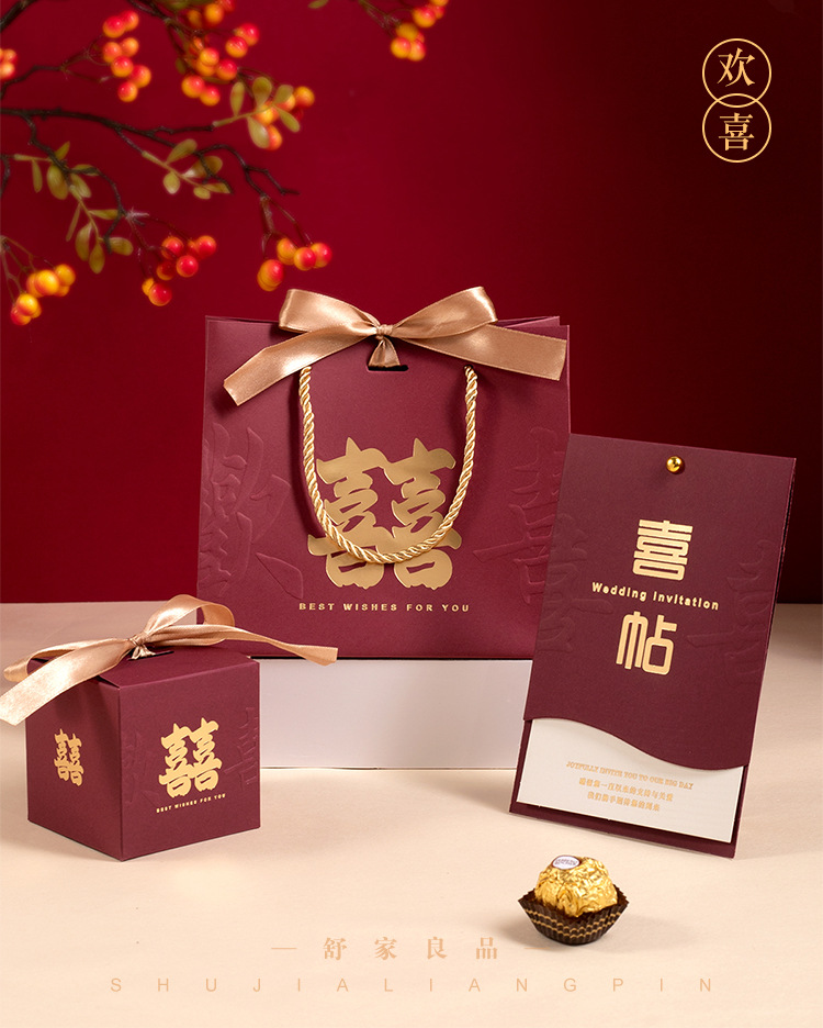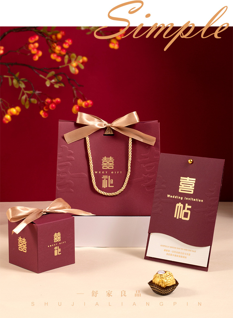 结婚专用喜糖盒婚礼喜糖袋订婚用中式喜帖婚庆喜糖盒子轻奢风格 English | 投诉