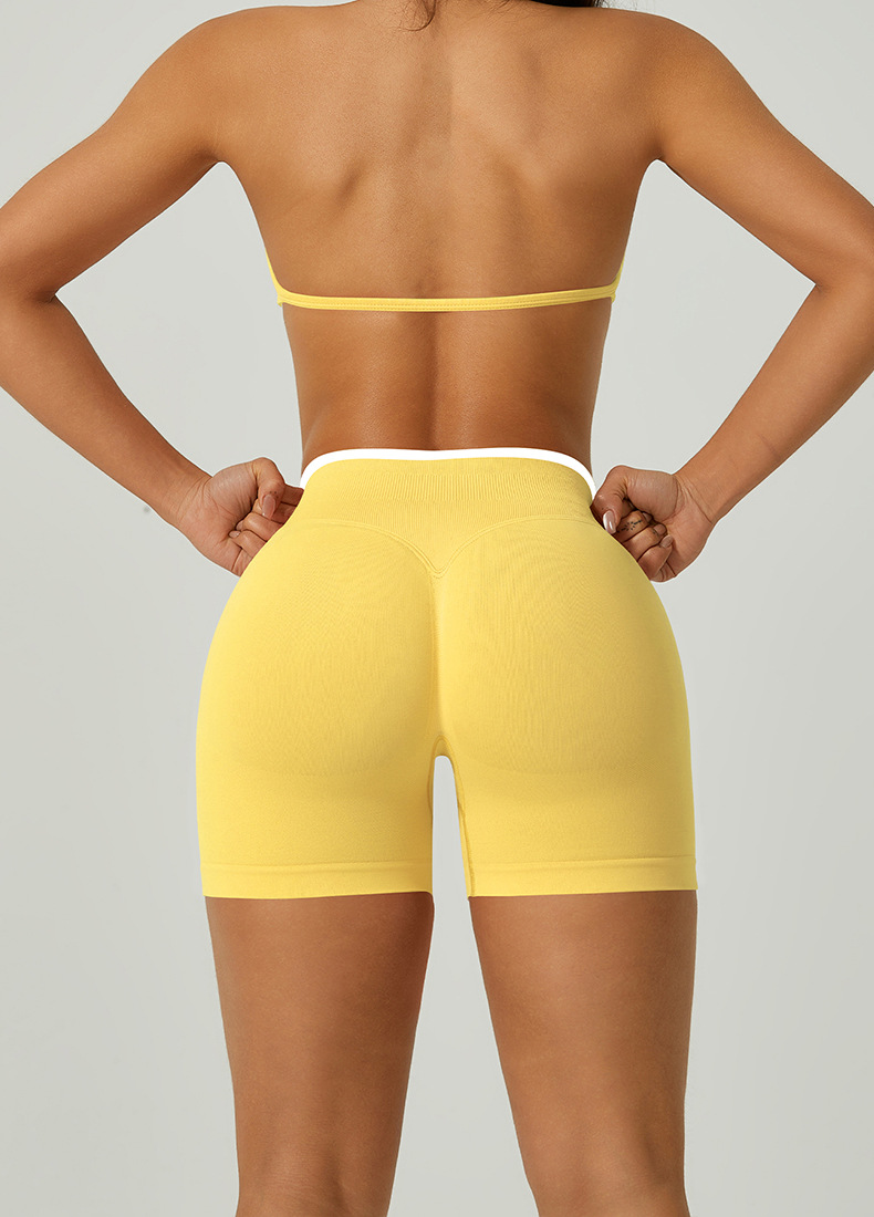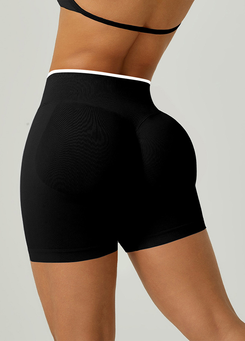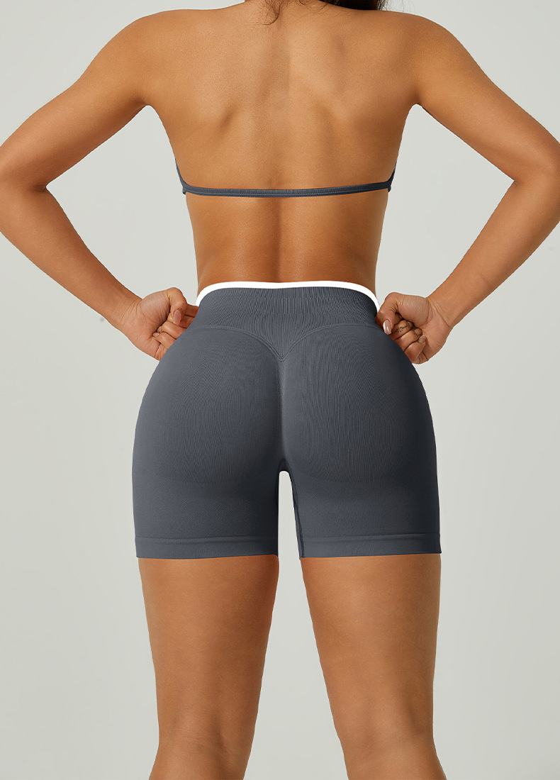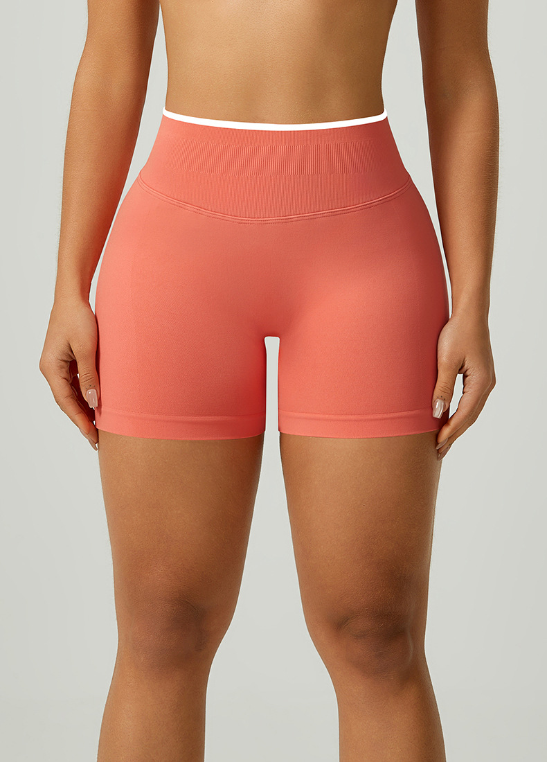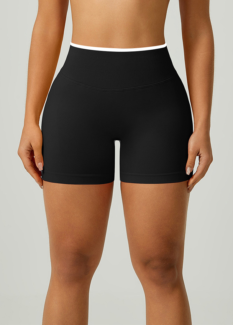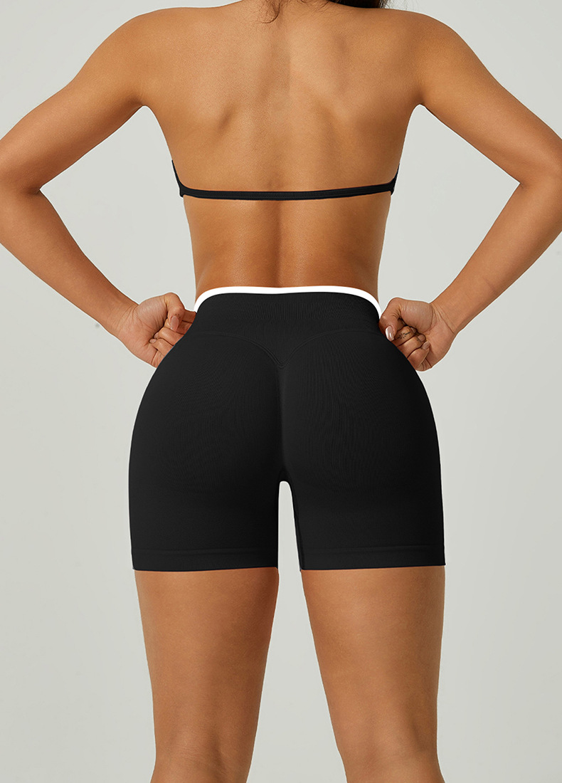 欧美跨境无缝瑜伽裤撞色包边三段腰紧身提臀短裤运动跑步健身短裤