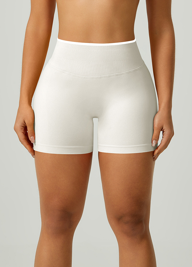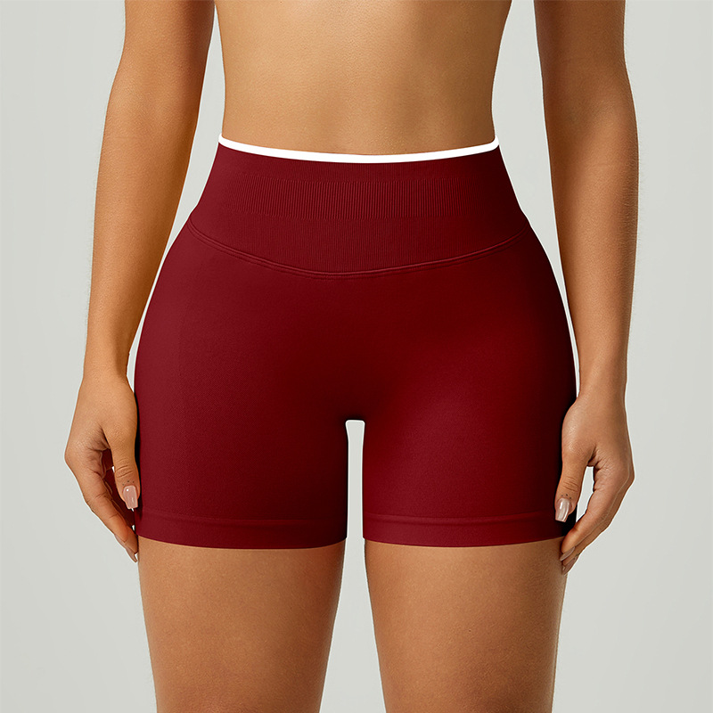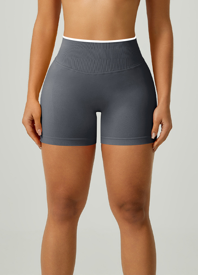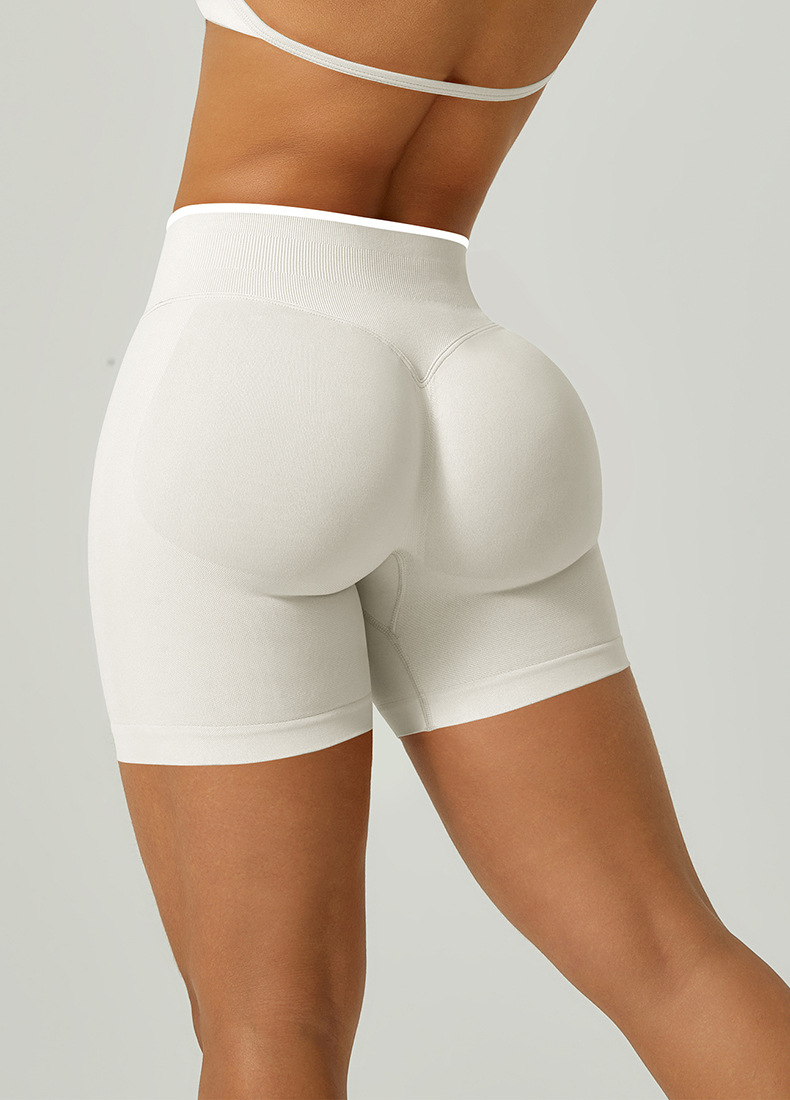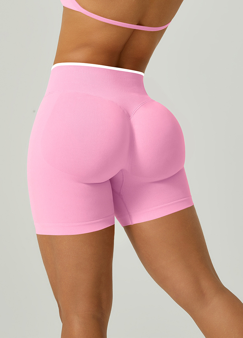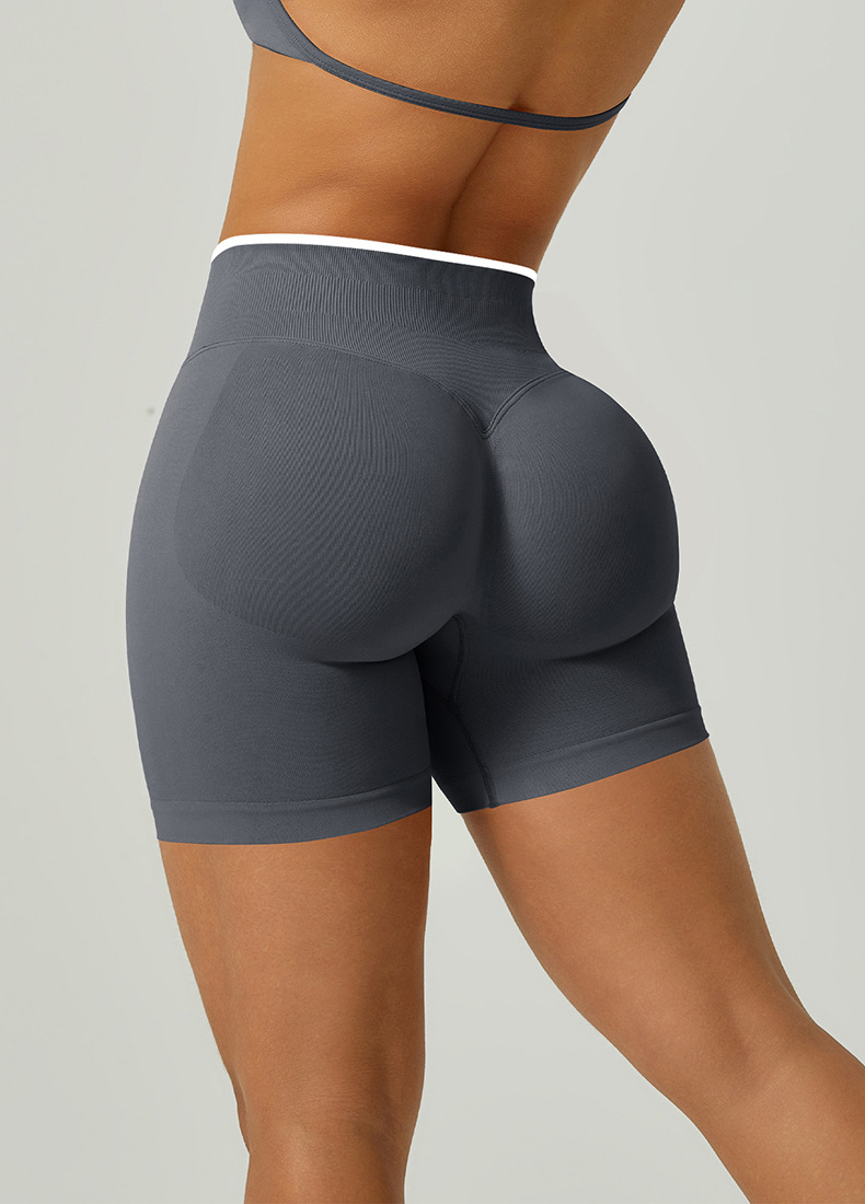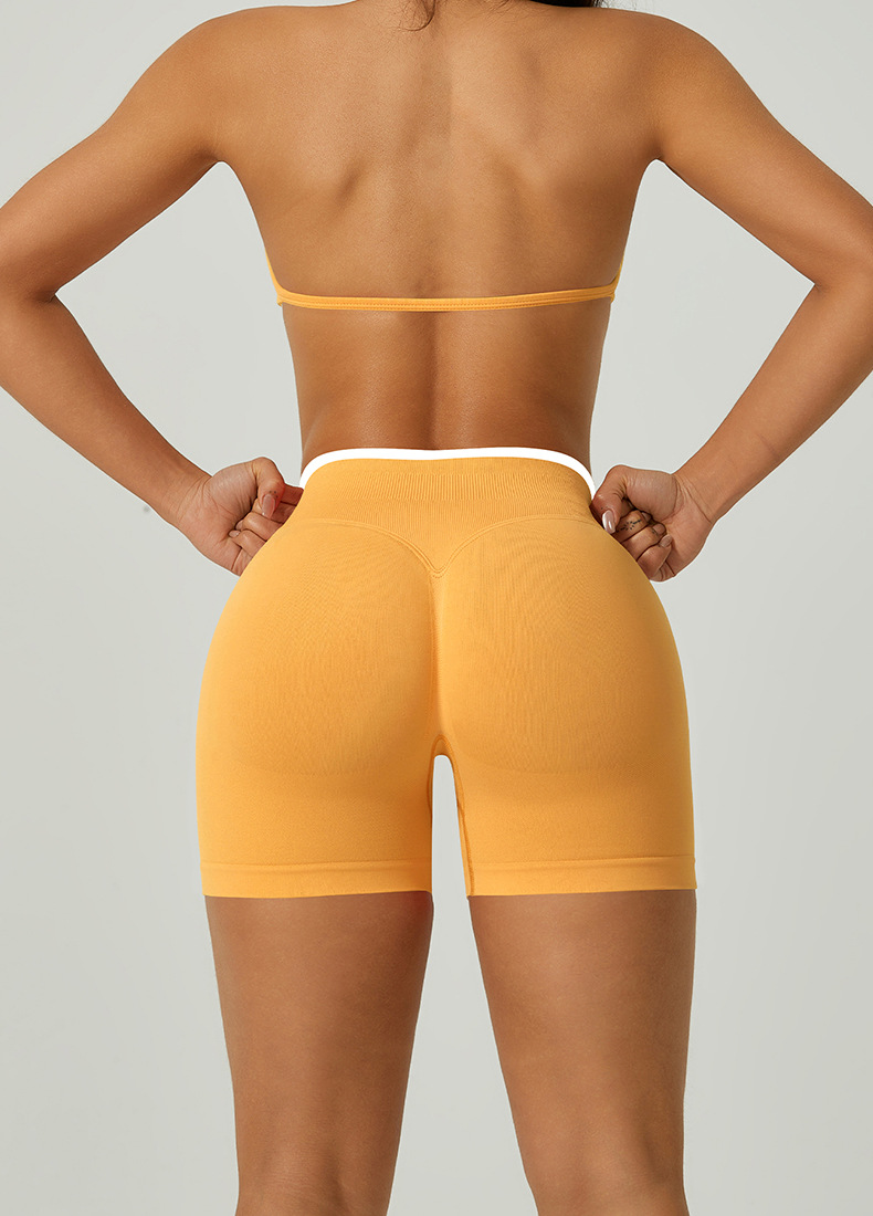 欧美跨境无缝瑜伽裤撞色包边三段腰紧身提臀短裤运动跑步健身短裤