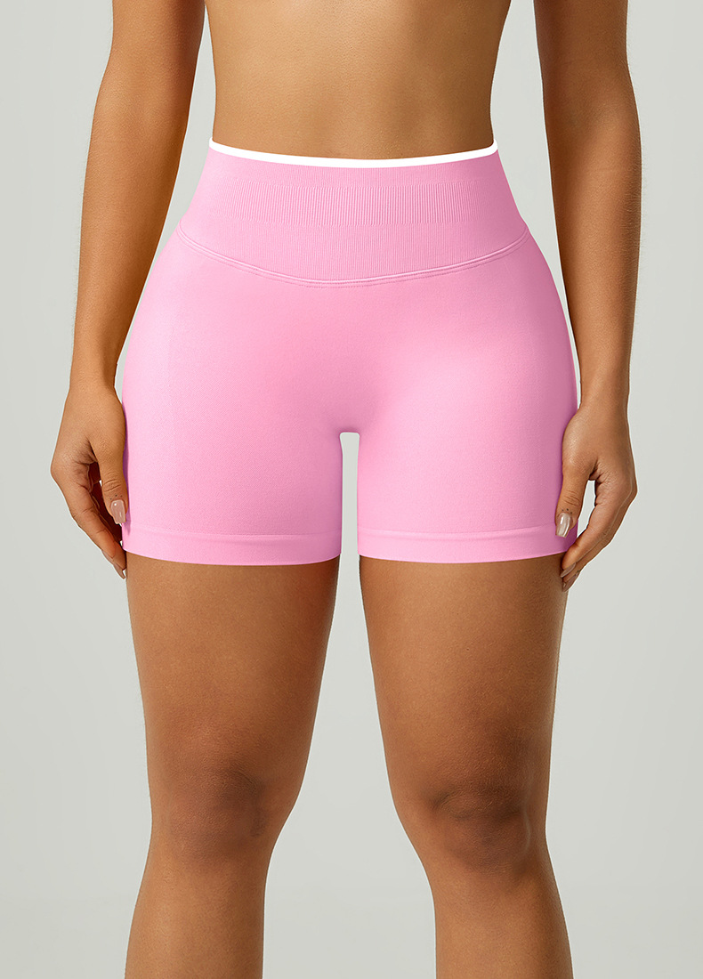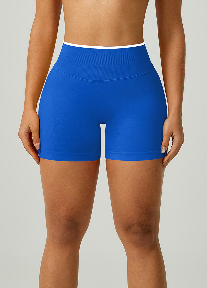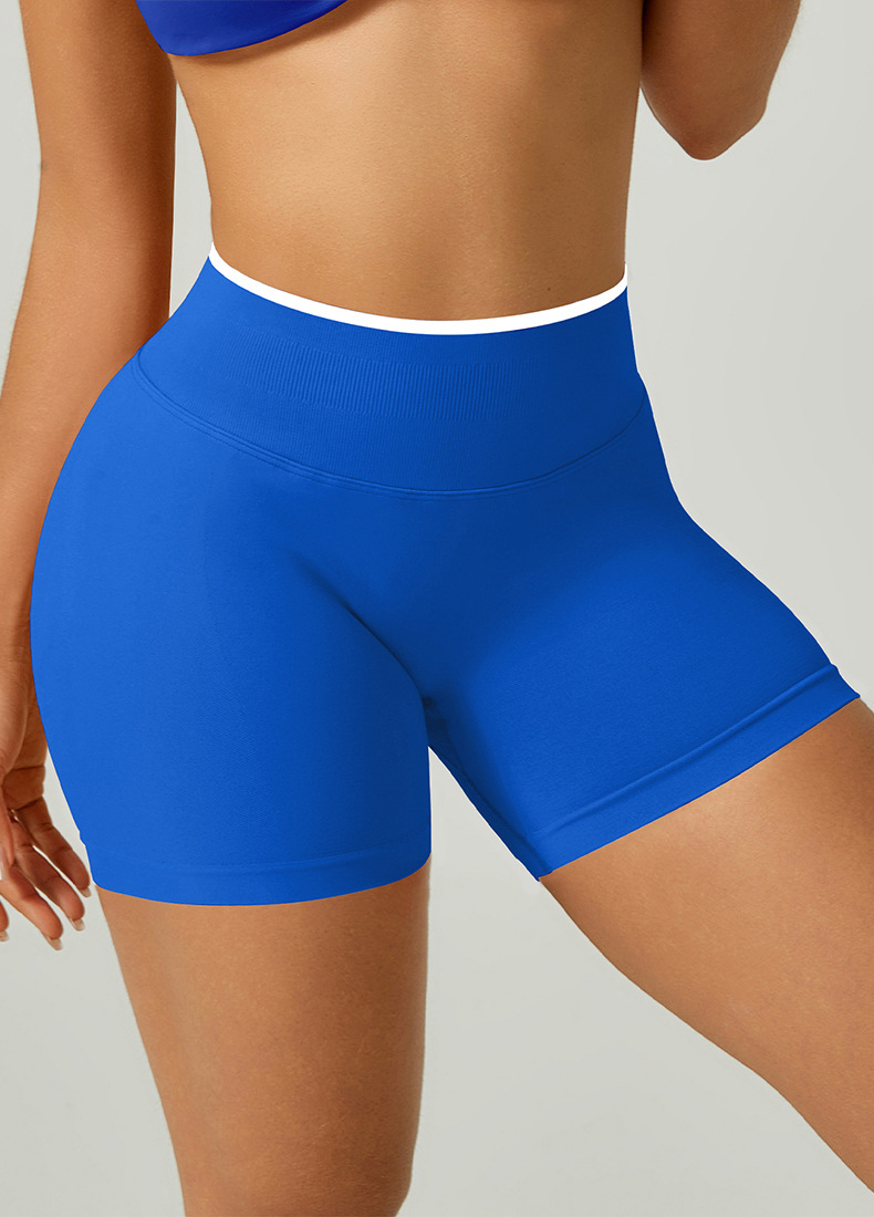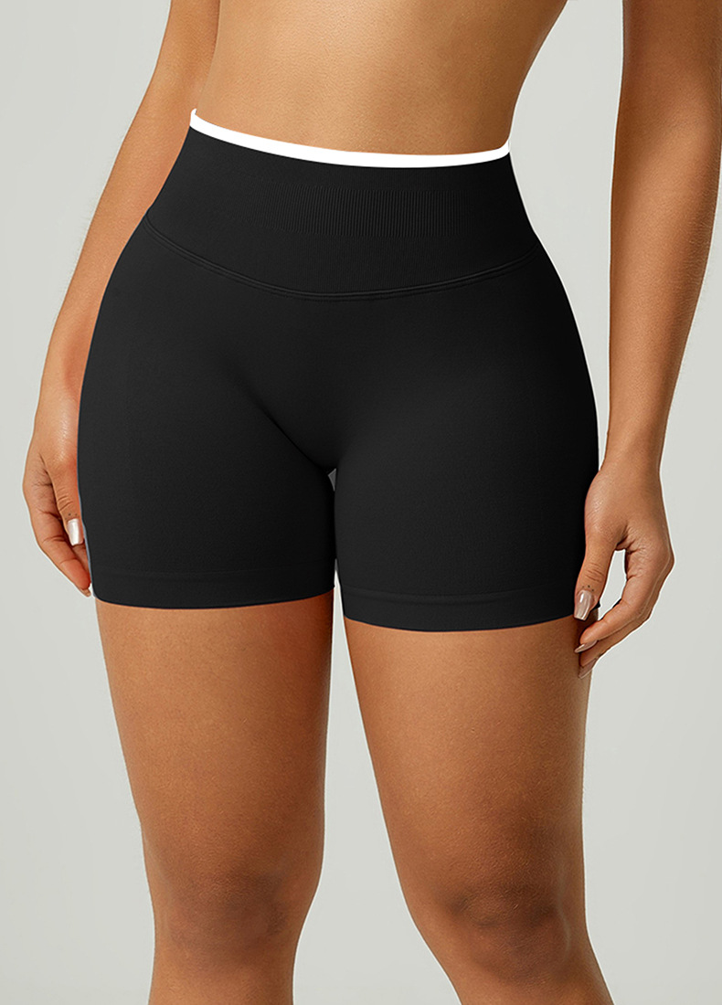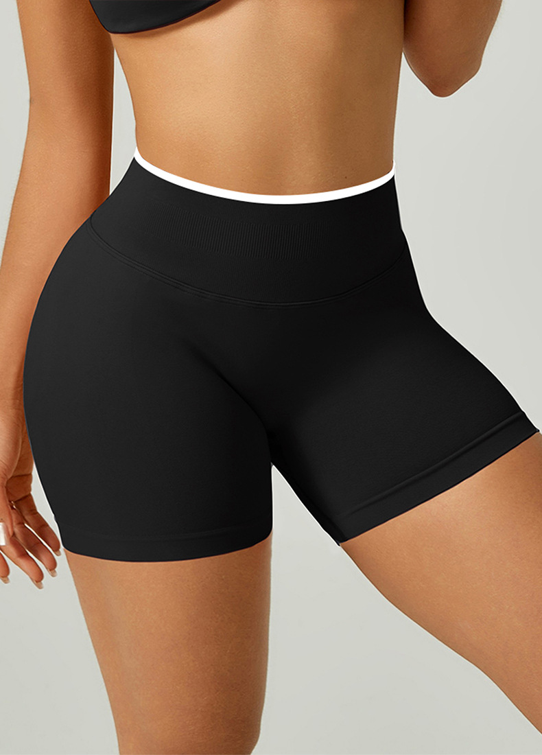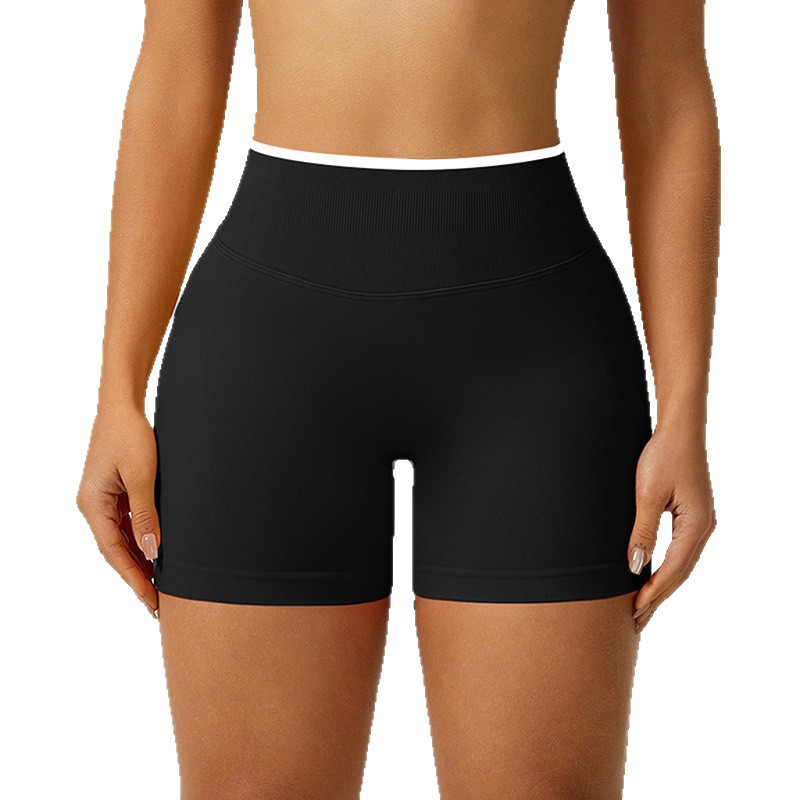 欧美跨境无缝瑜伽裤撞色包边三段腰紧身提臀短裤运动跑步健身短裤 English | 投诉