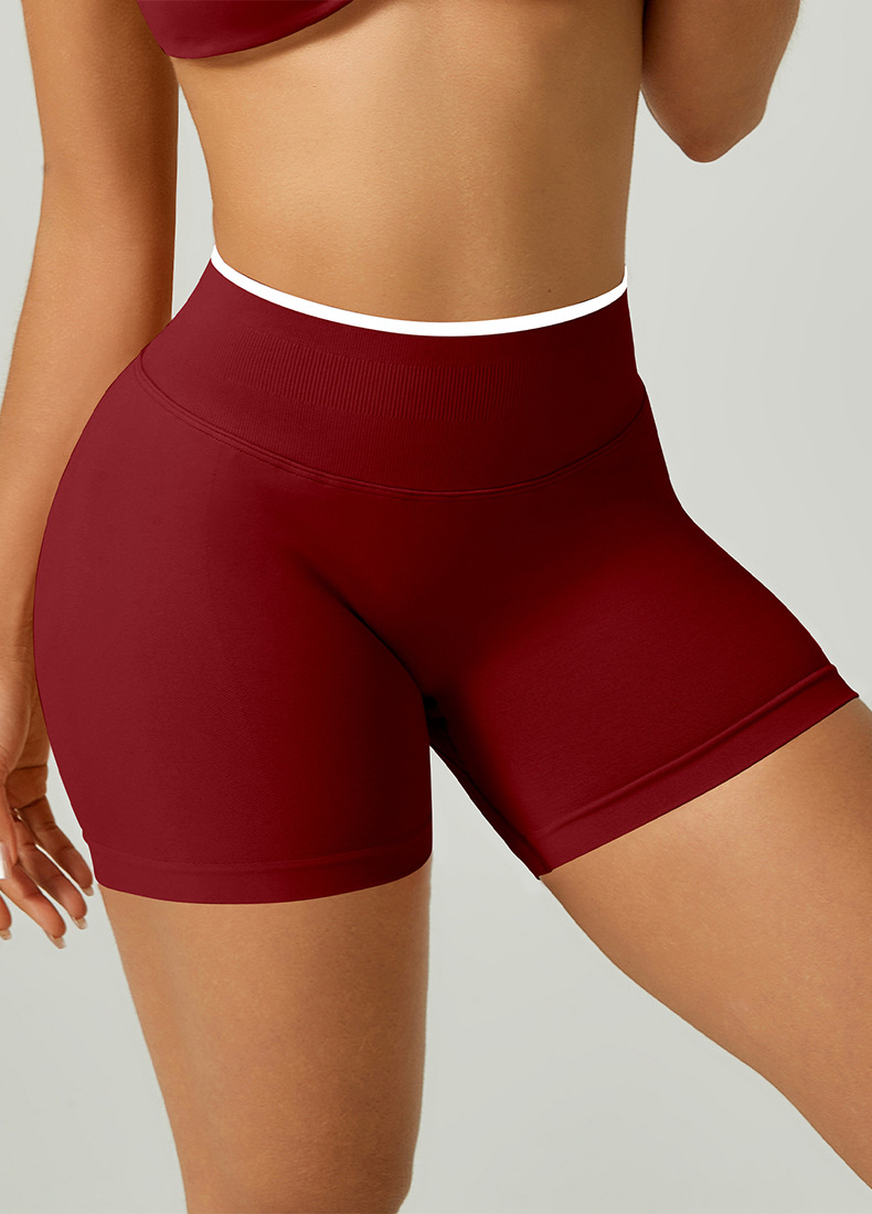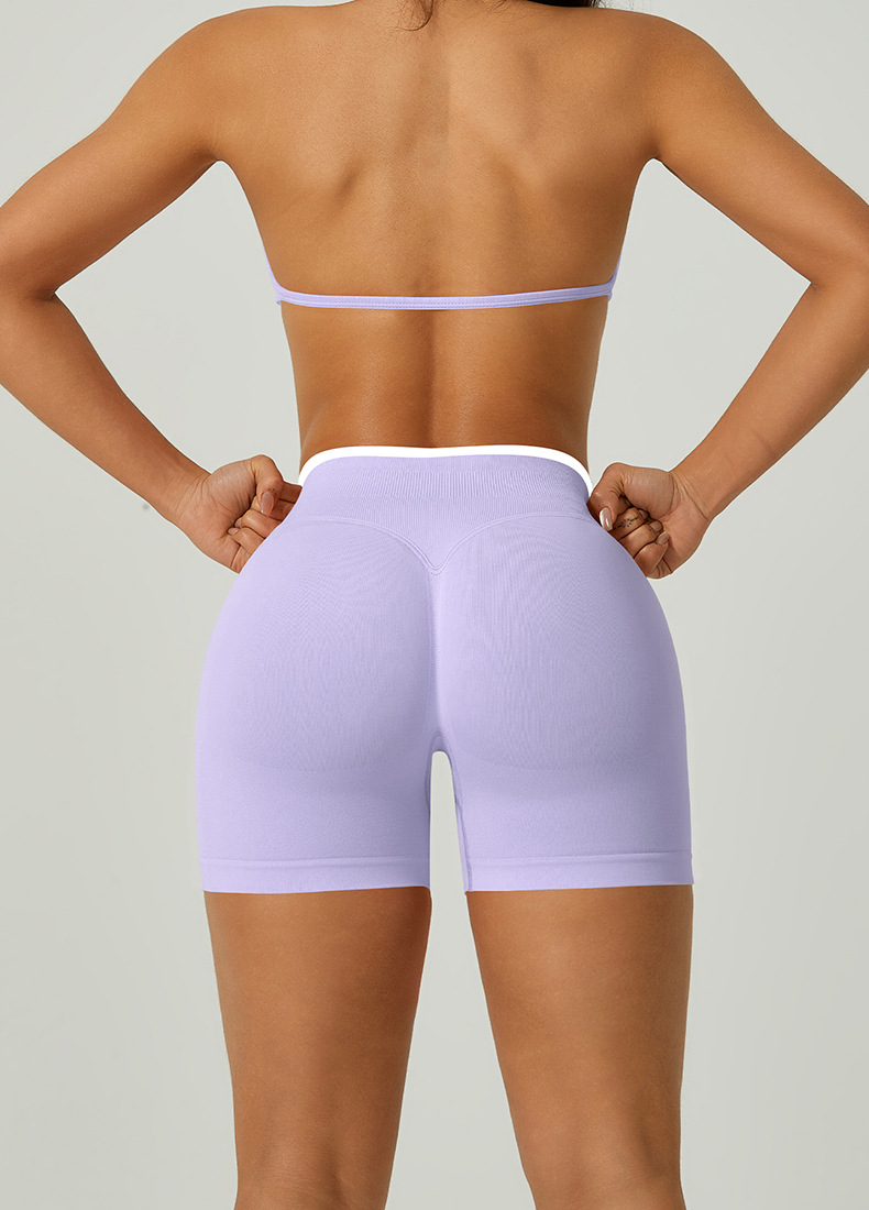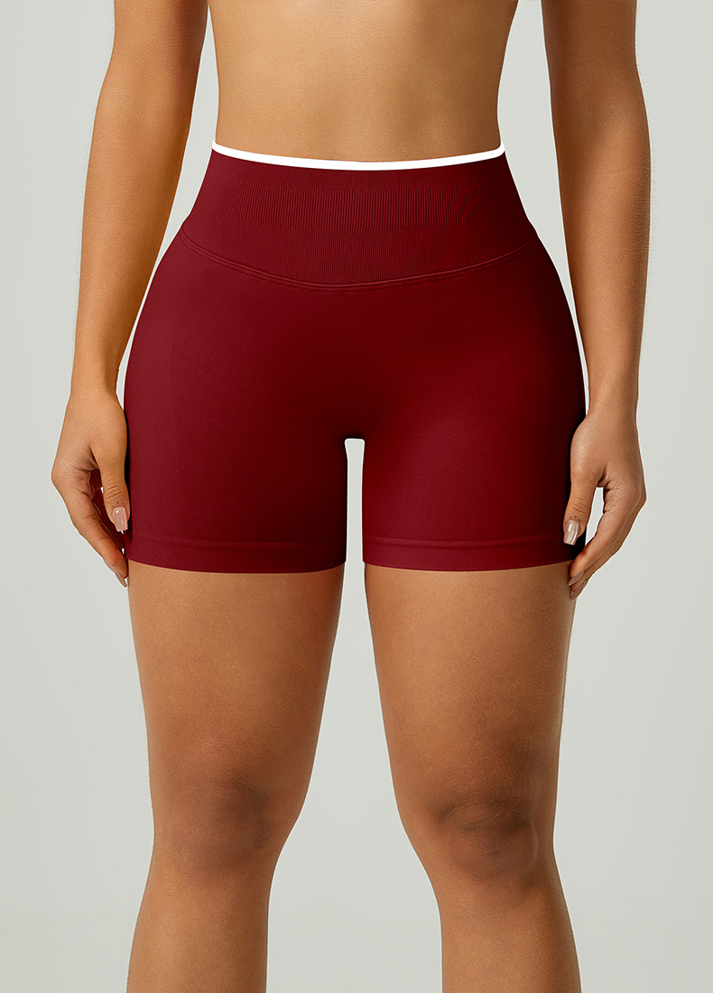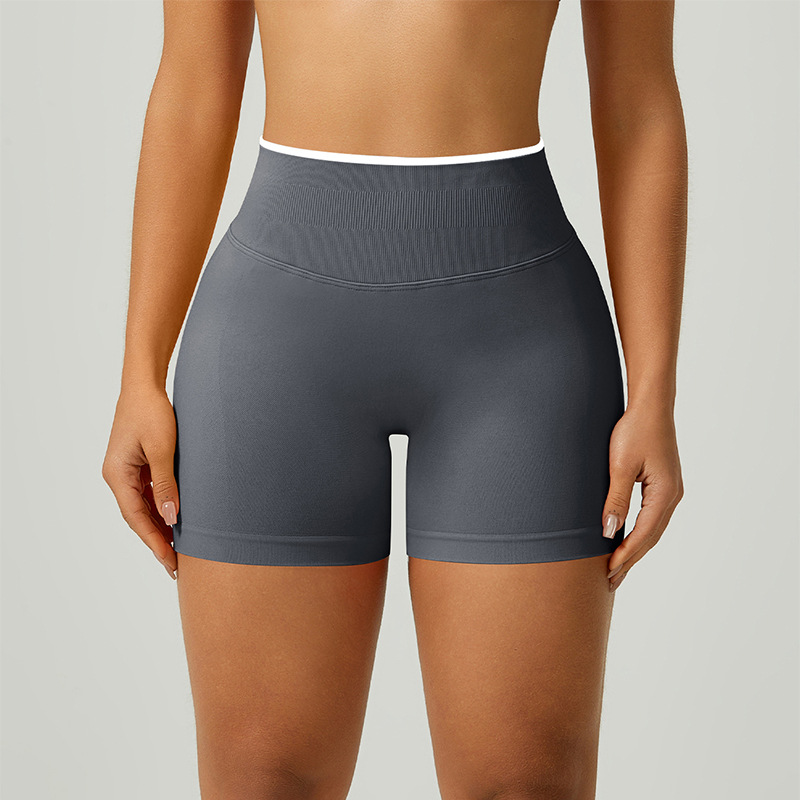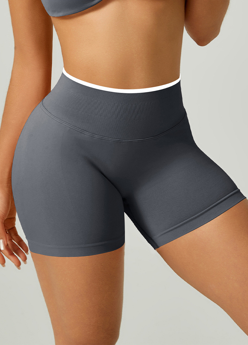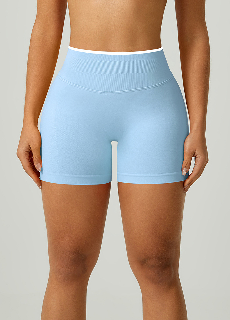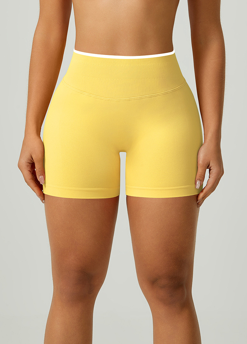 欧美跨境无缝瑜伽裤撞色包边三段腰紧身提臀短裤运动跑步健身短裤 English | 投诉