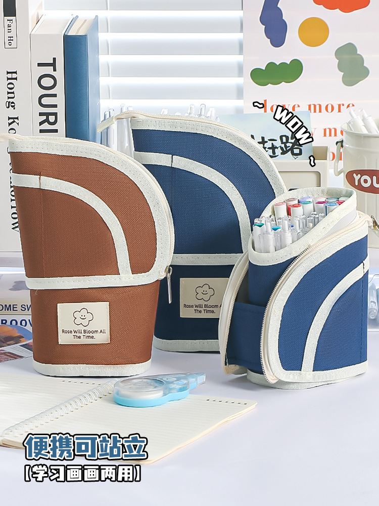 2025新款多功能伸缩笔筒大容量铅笔盒中小学生小众设计感文具袋