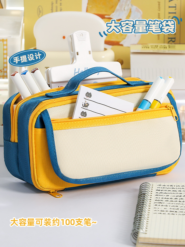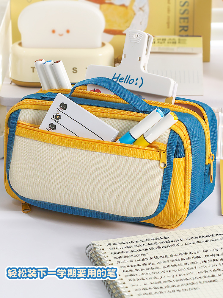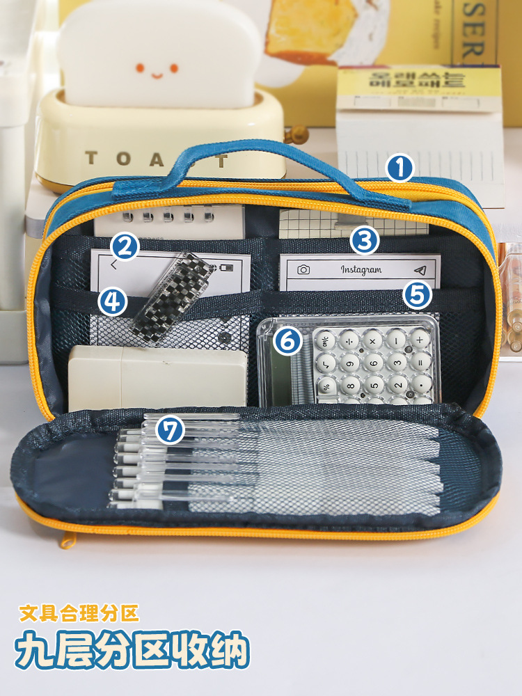 大容量2025新款手提9层撞色笔袋小众男女通用简约多层文具袋